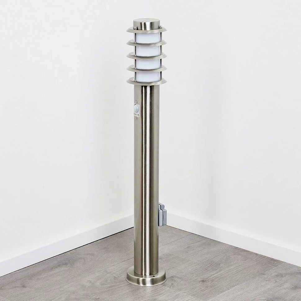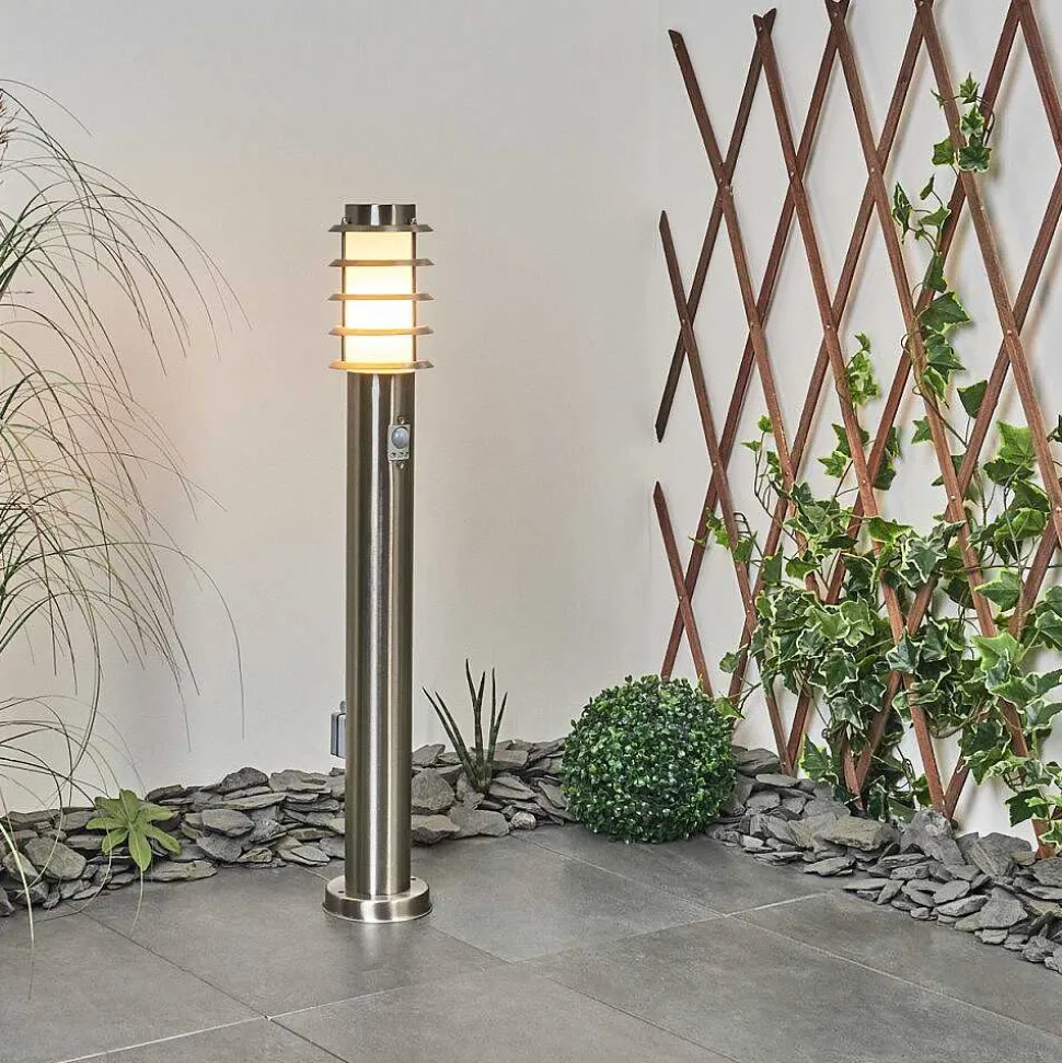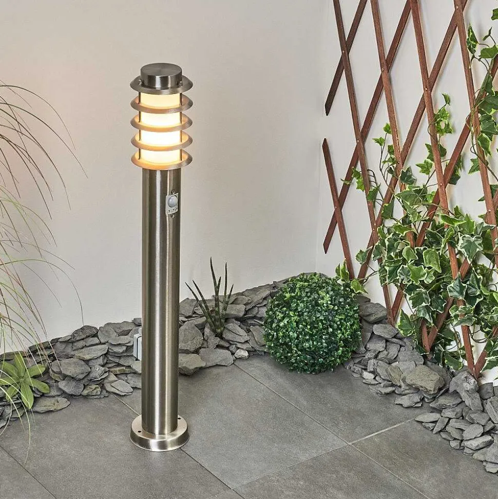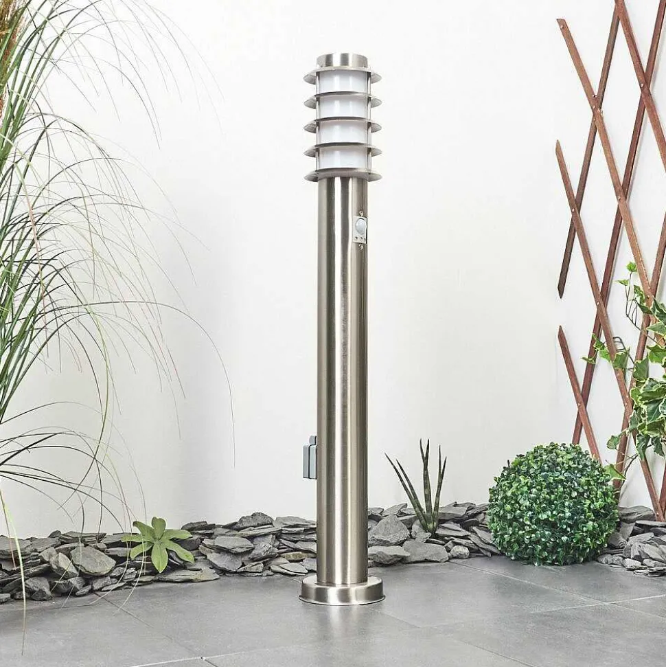 Borne Lumineuse Tunes Nickel Mat, 1 Lumiere, Detecteur De Mouvement