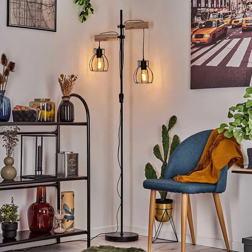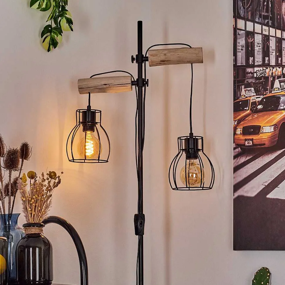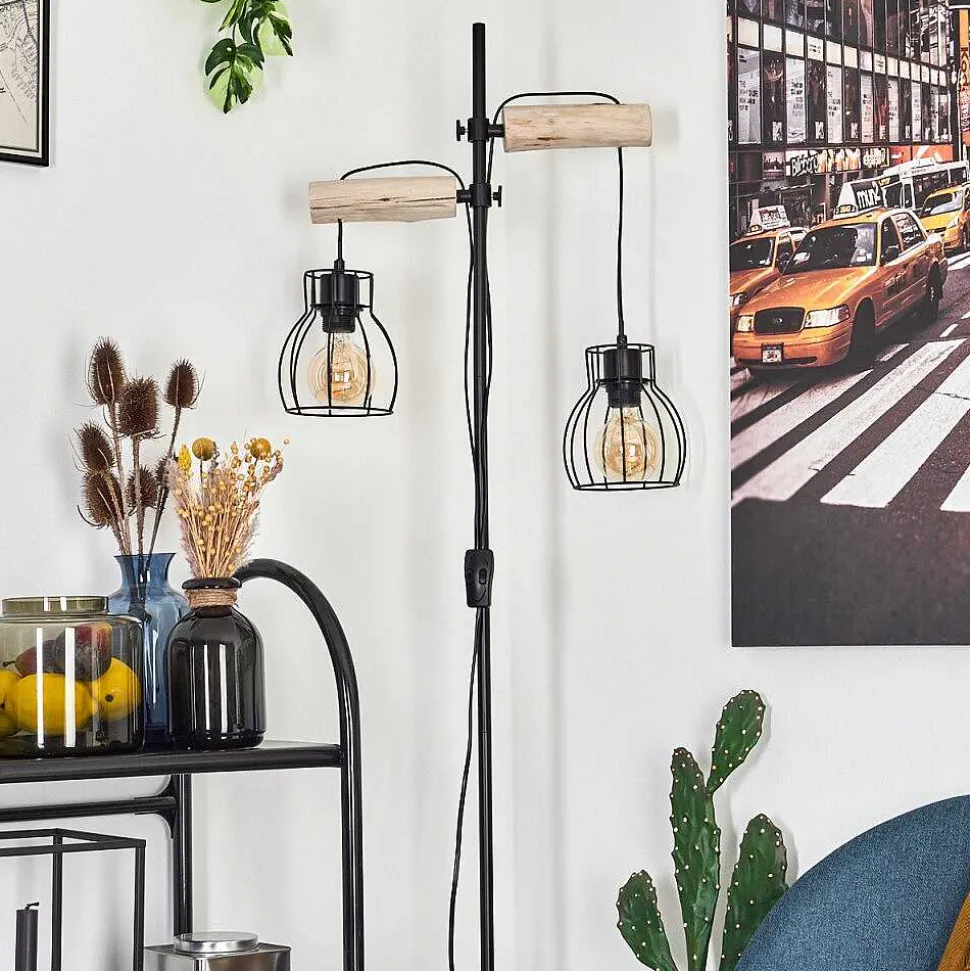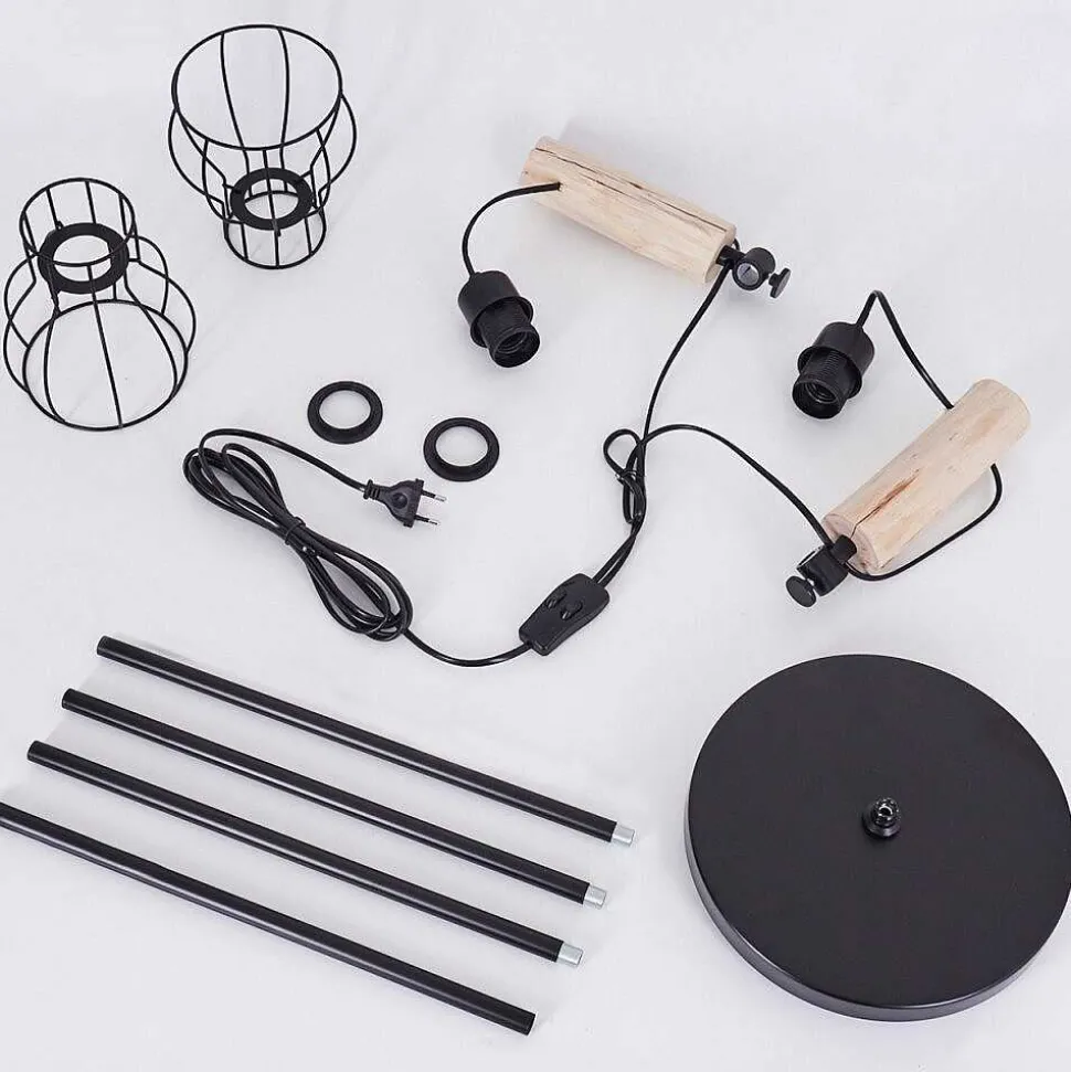 Lampadaire Gondo Bois Clair, Noir, 2 Lumieres