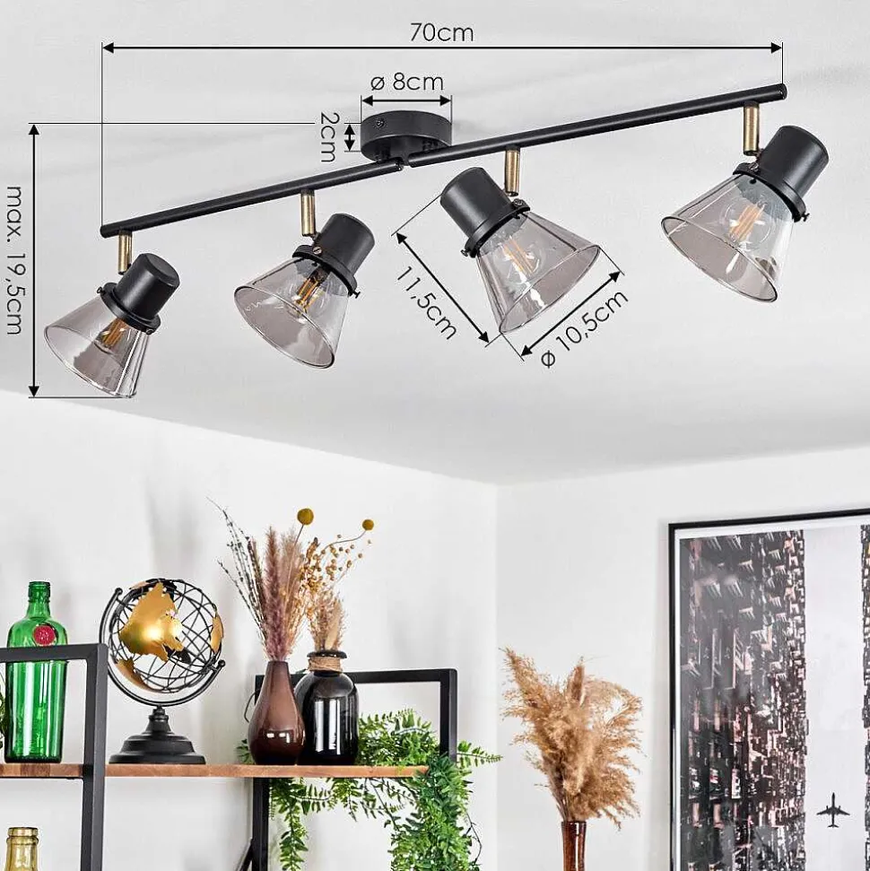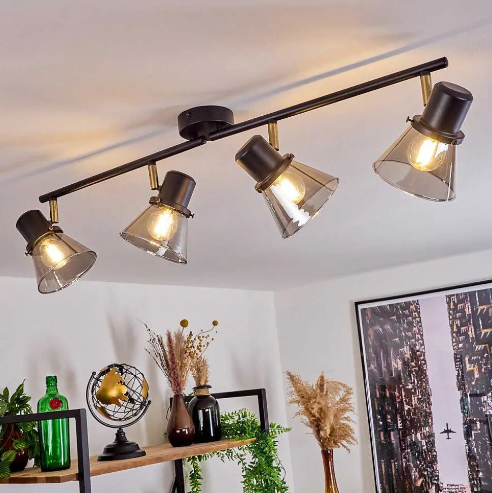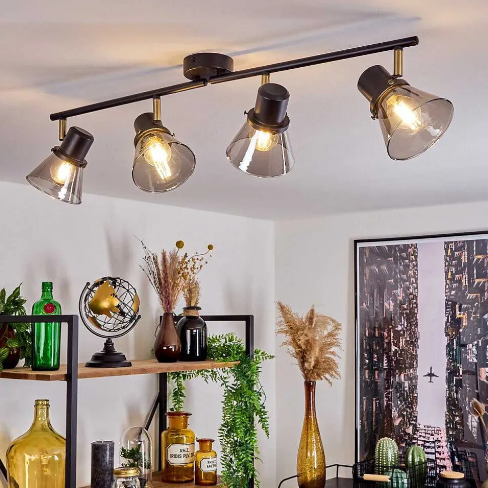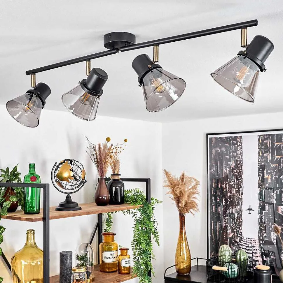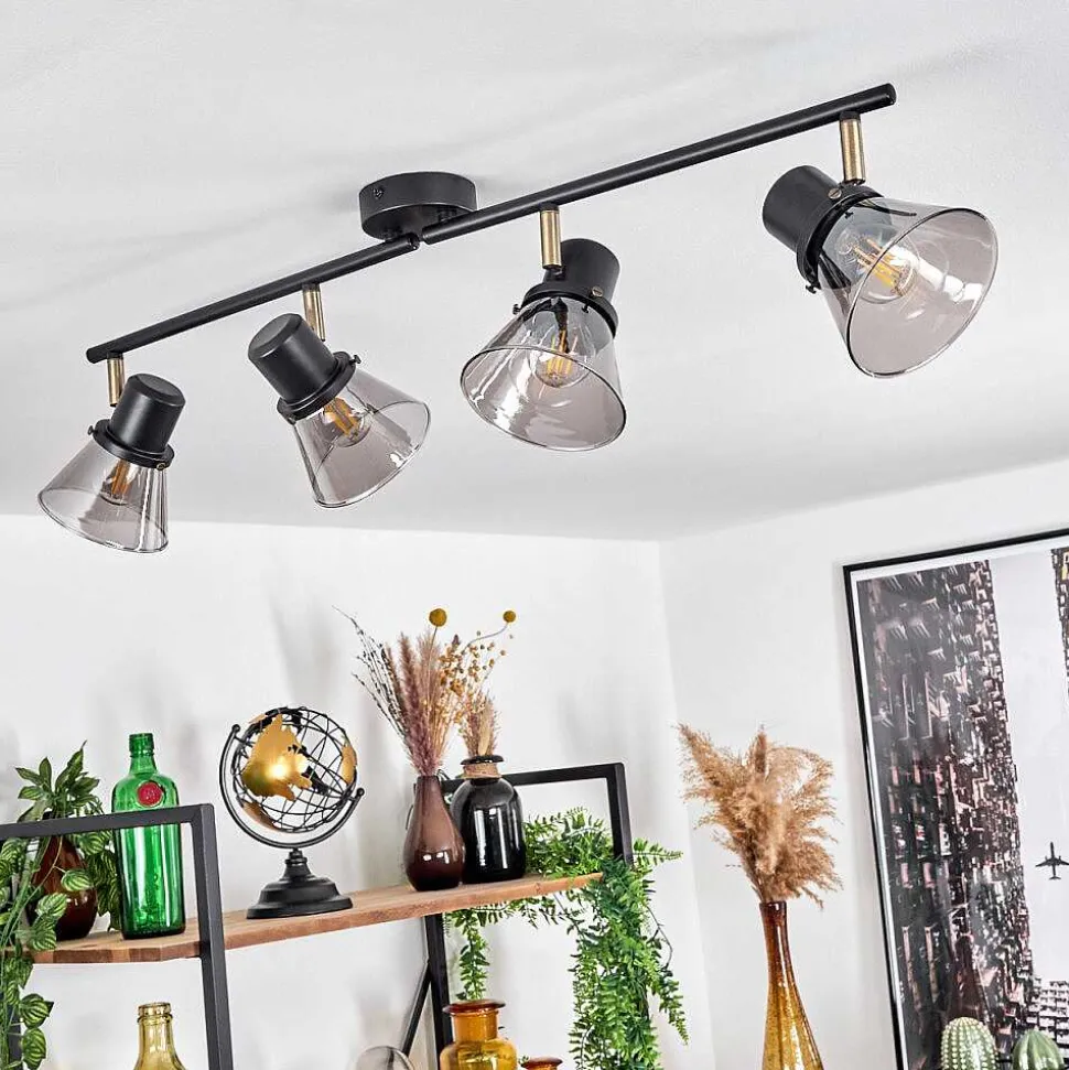 Plafonnier Abel Noir Dore, 4 Lumieres