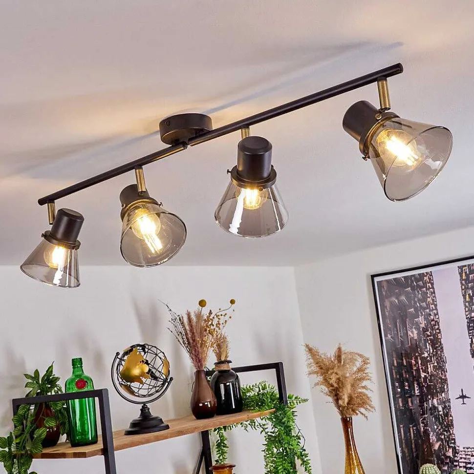 Plafonnier – Verre 15 Cm Gastor Ambre, Clair, Fume, 5 Lumieres