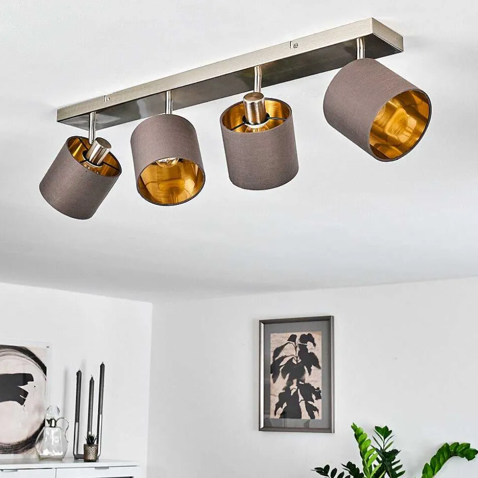 Plafonnier Salmi Led Brun, Couleur Bois, Noir, 1 Lumiere, Telecommandes