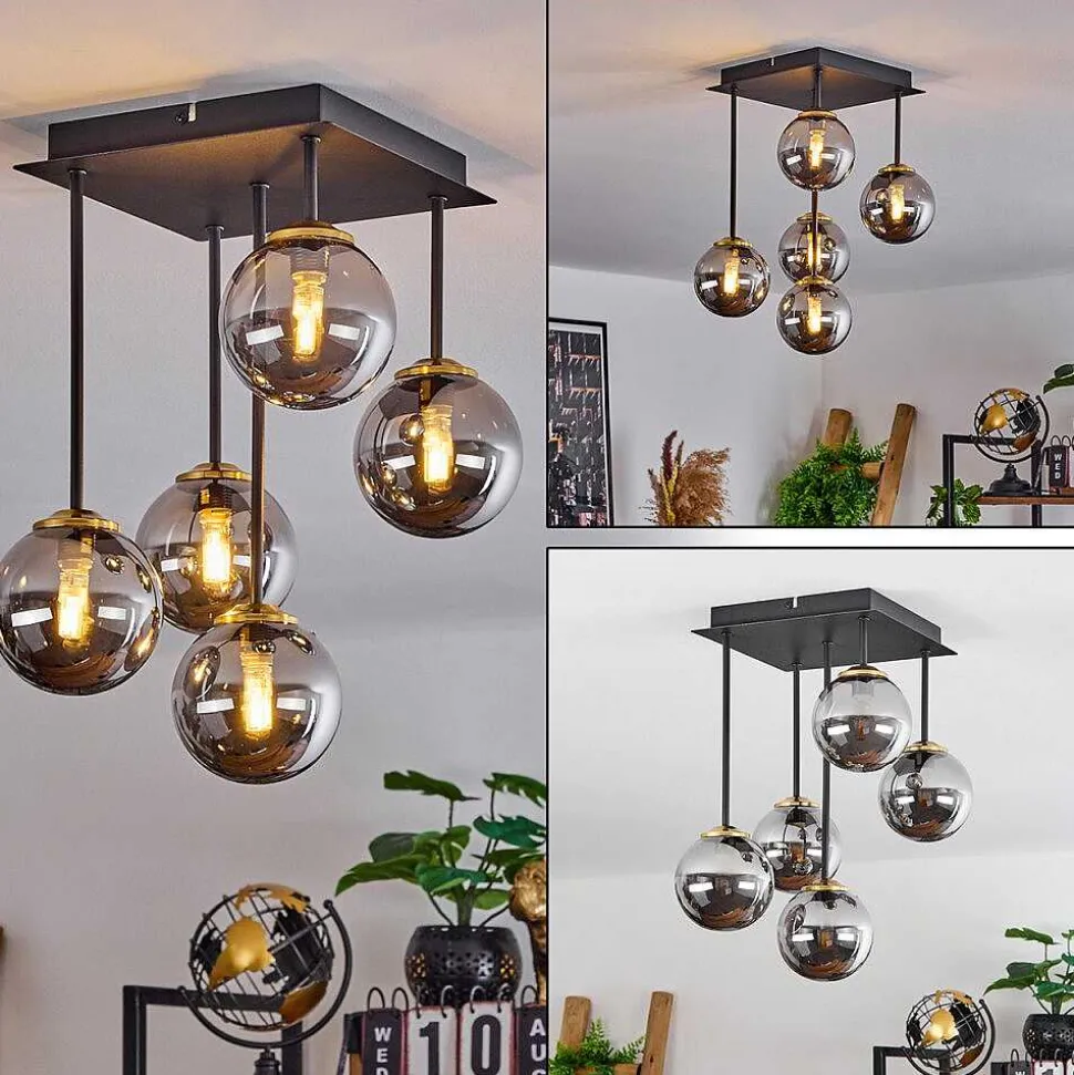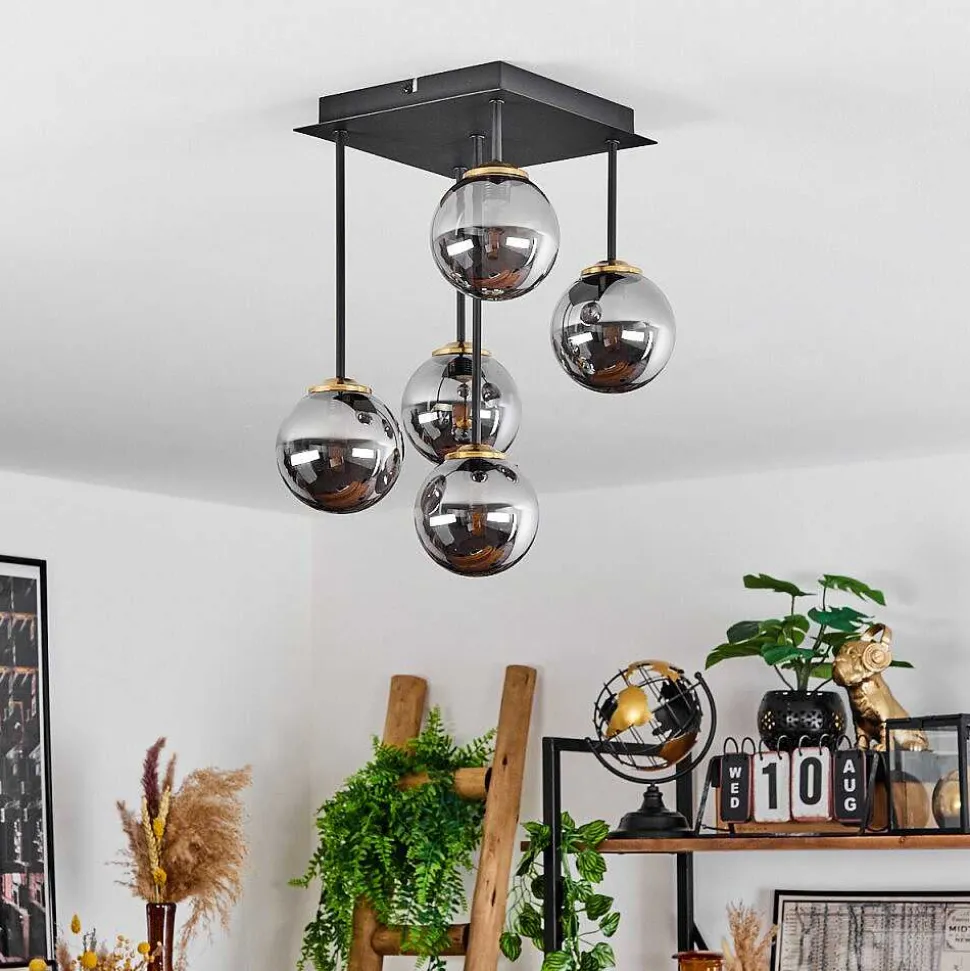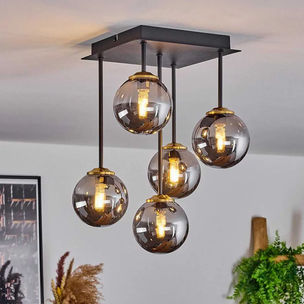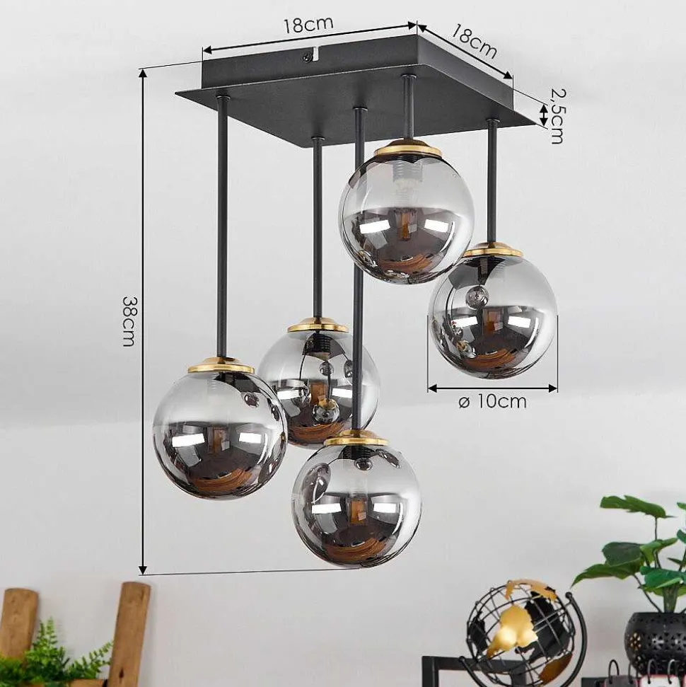Plafonnier – Verre 15 Cm Gastor Ambre, Clair, Fume, 5 Lumieres