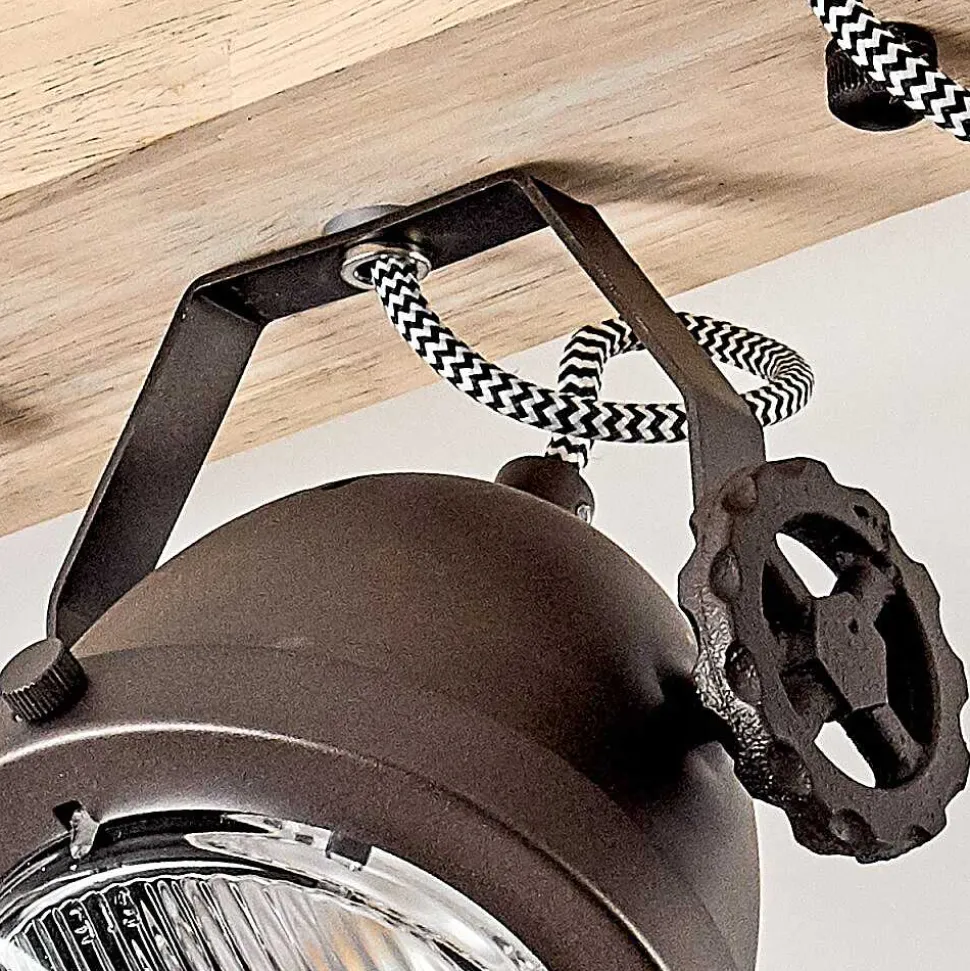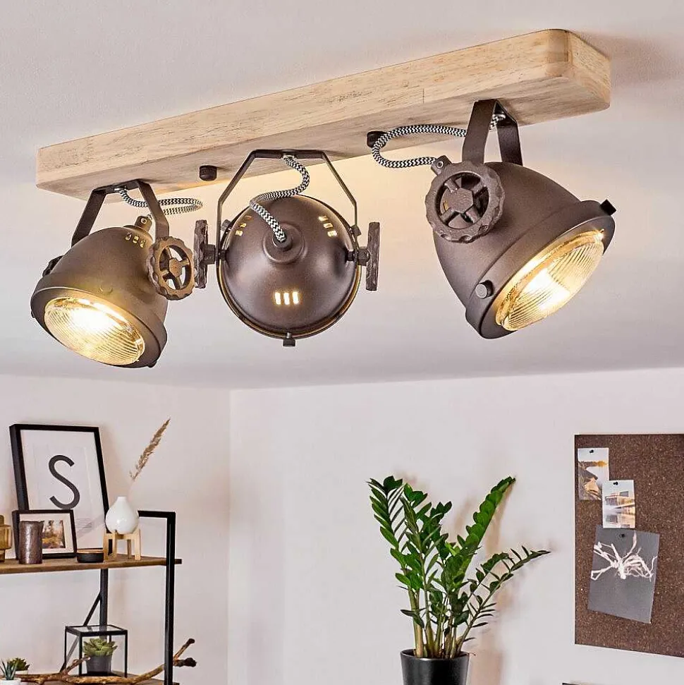 Plafonnier Salmi Led Brun, Couleur Bois, Noir, 1 Lumiere, Telecommandes