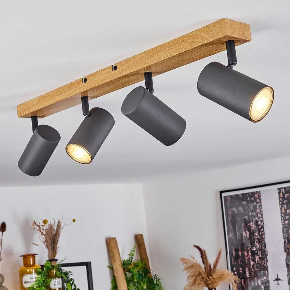 Plafonnier Salmi Led Brun, Couleur Bois, Noir, 1 Lumiere, Telecommandes