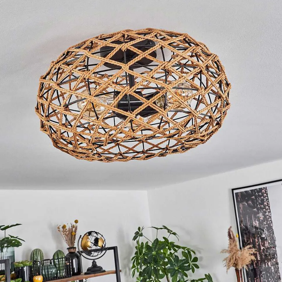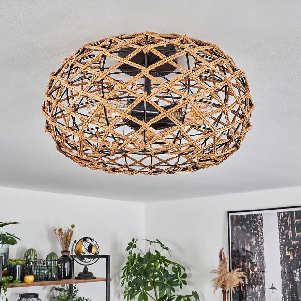 Plafonnier Salmi Led Brun, Couleur Bois, Noir, 1 Lumiere, Telecommandes