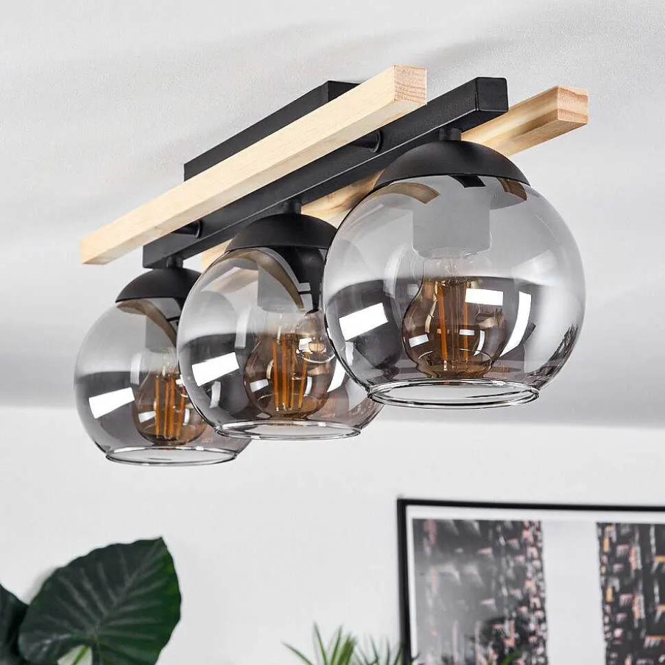 Plafonnier Salmi Led Brun, Couleur Bois, Noir, 1 Lumiere, Telecommandes