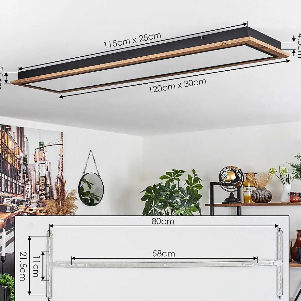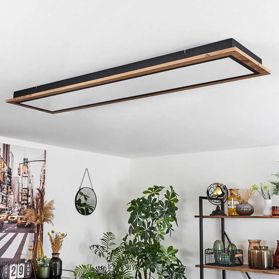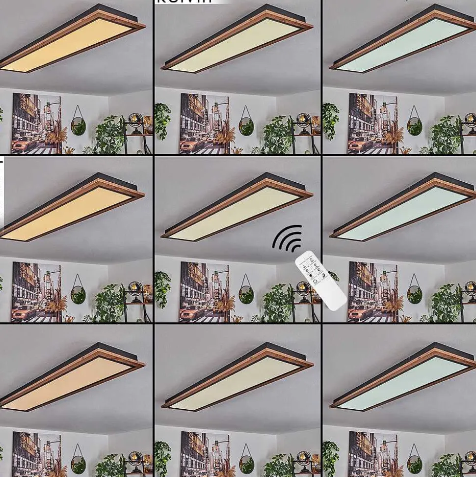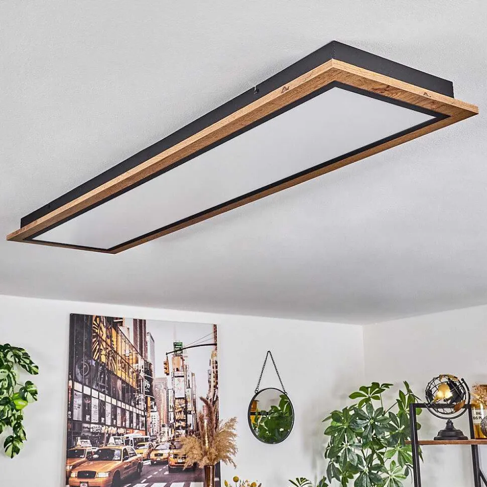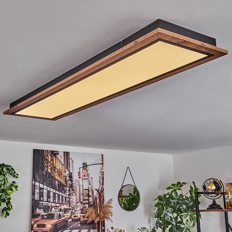 Plafonnier Salmi Led Brun, Couleur Bois, Noir, 1 Lumiere, Telecommandes