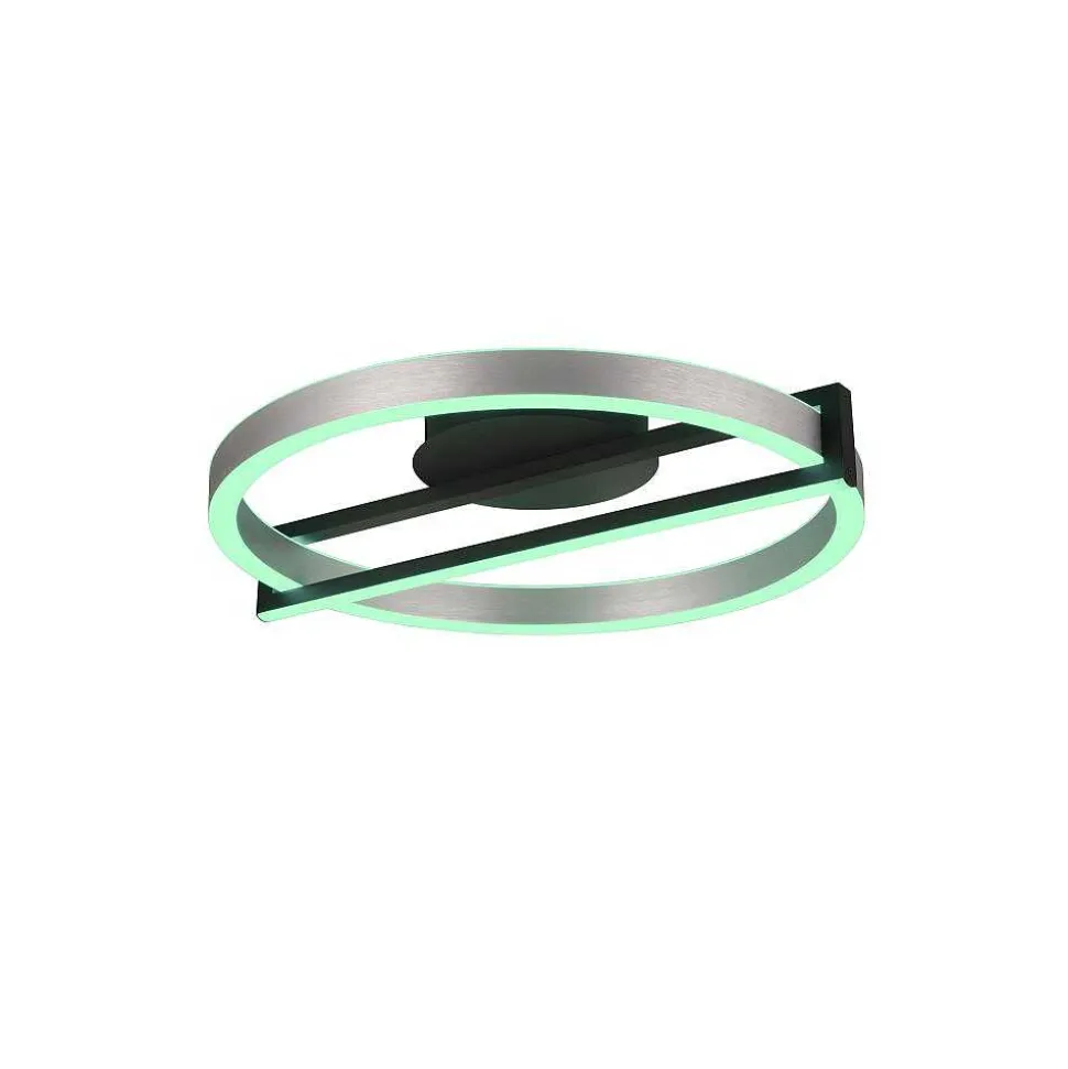 Plafonnier Trio Thompson Led Aluminium Brosse, 1 Lumiere, Telecommandes, Changeur De Couleurs