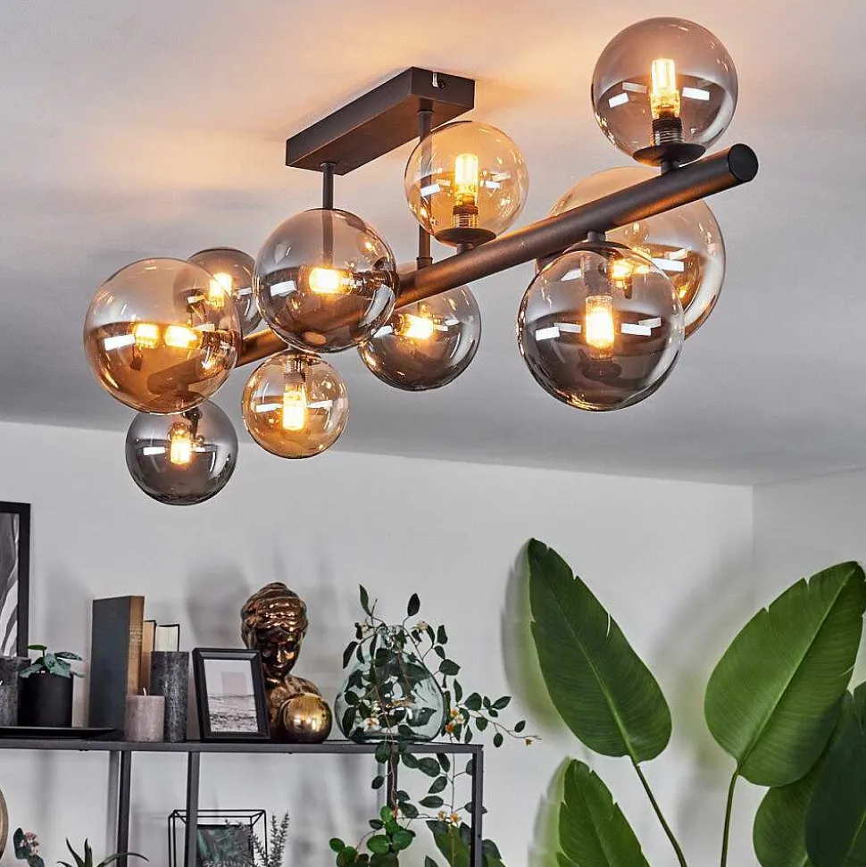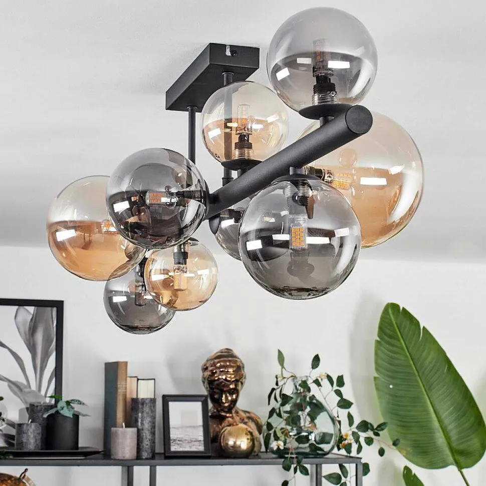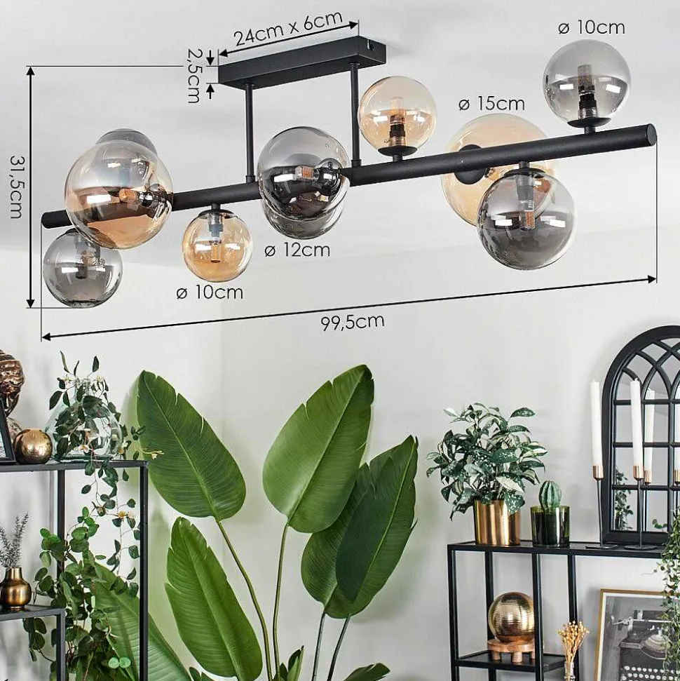 Plafonnier – Verre 10 Cm, 12 Cm, 15 Cm Chehalis Ambre, Fume, 10 Lumieres