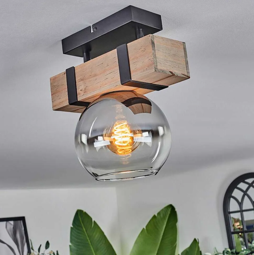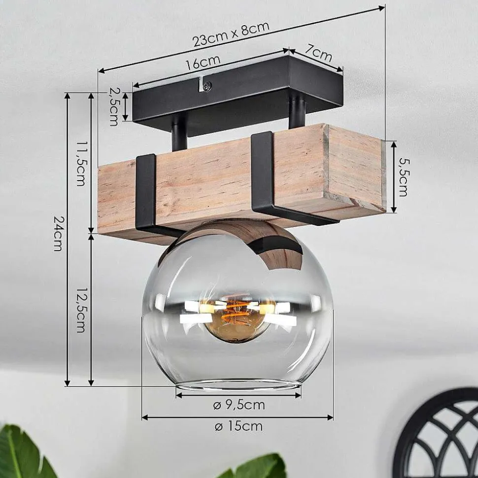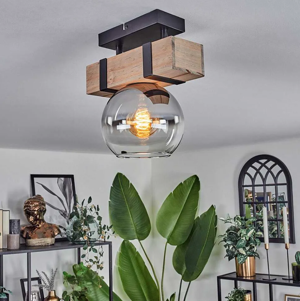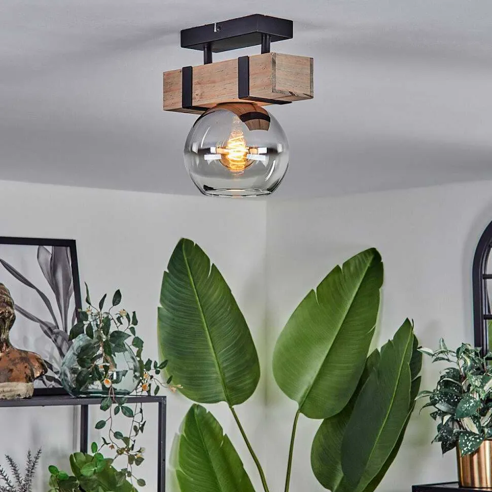 Plafonnier Salmi Led Brun, Couleur Bois, Noir, 1 Lumiere, Telecommandes