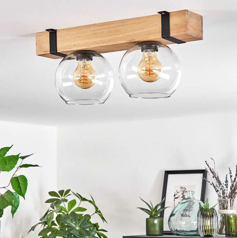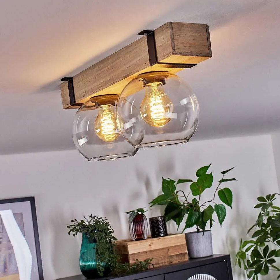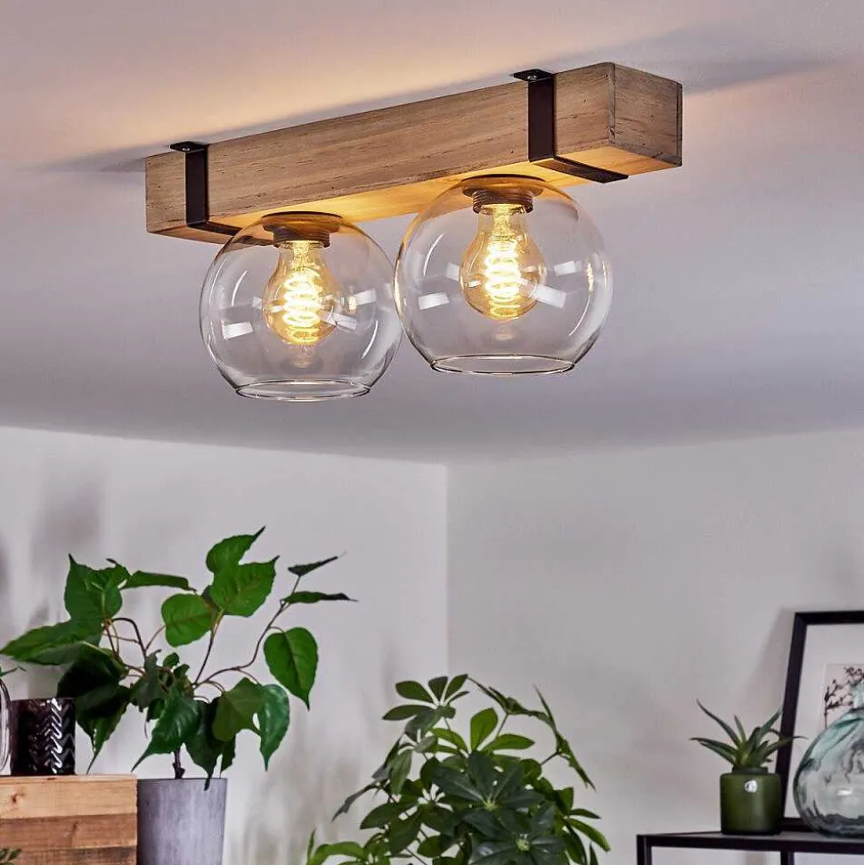 Plafonnier Salmi Led Brun, Couleur Bois, Noir, 1 Lumiere, Telecommandes