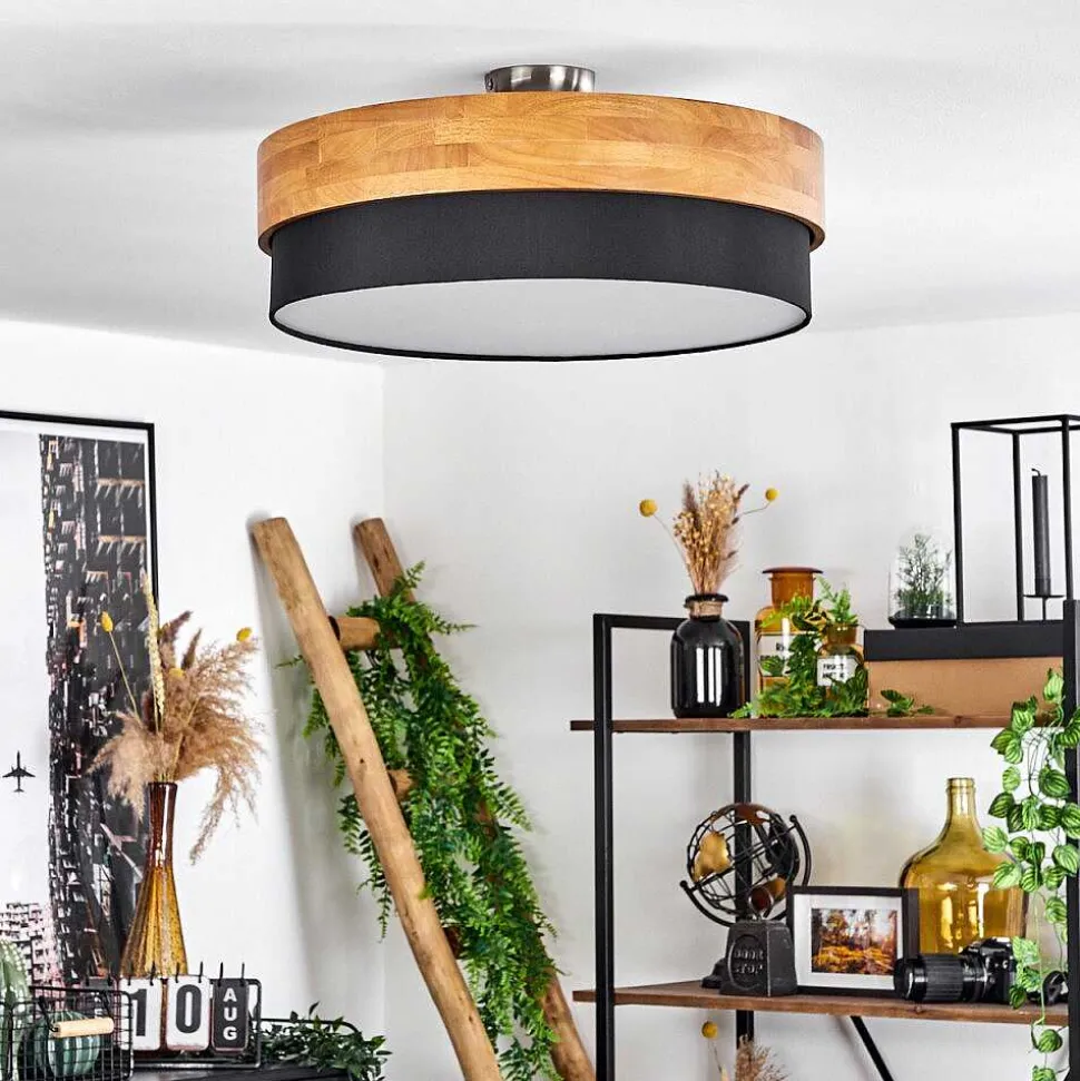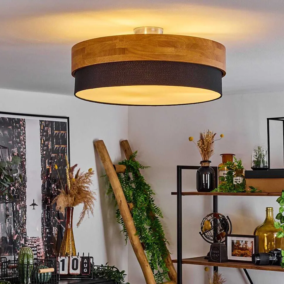 Plafonnier Salmi Led Brun, Couleur Bois, Noir, 1 Lumiere, Telecommandes