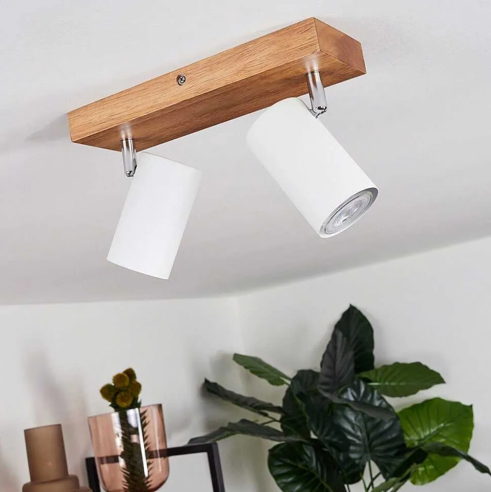 Plafonnier Salmi Led Brun, Couleur Bois, Noir, 1 Lumiere, Telecommandes