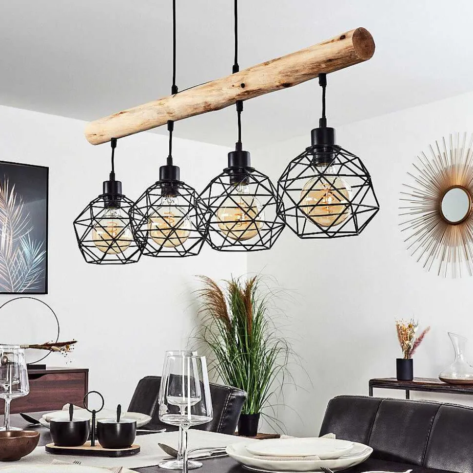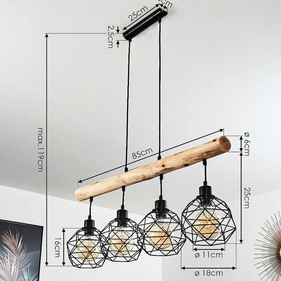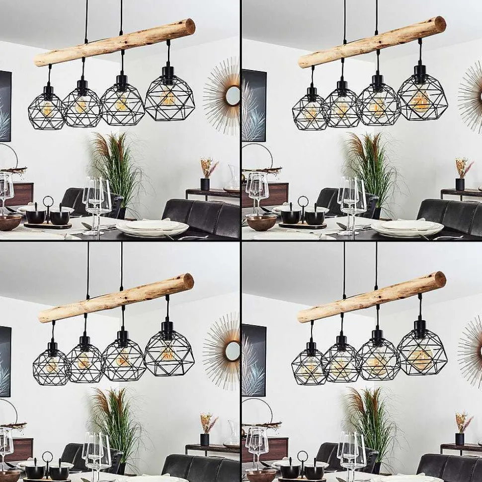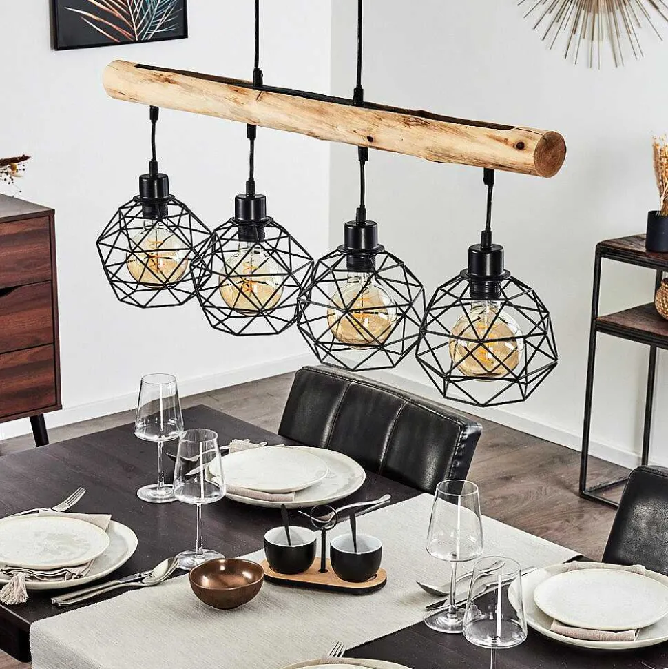 Suspension Bacabal Bois Clair, Noir, 4 Lumieres