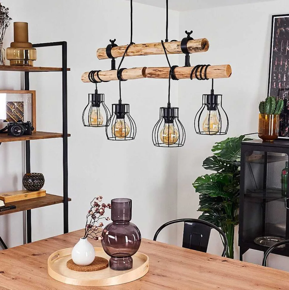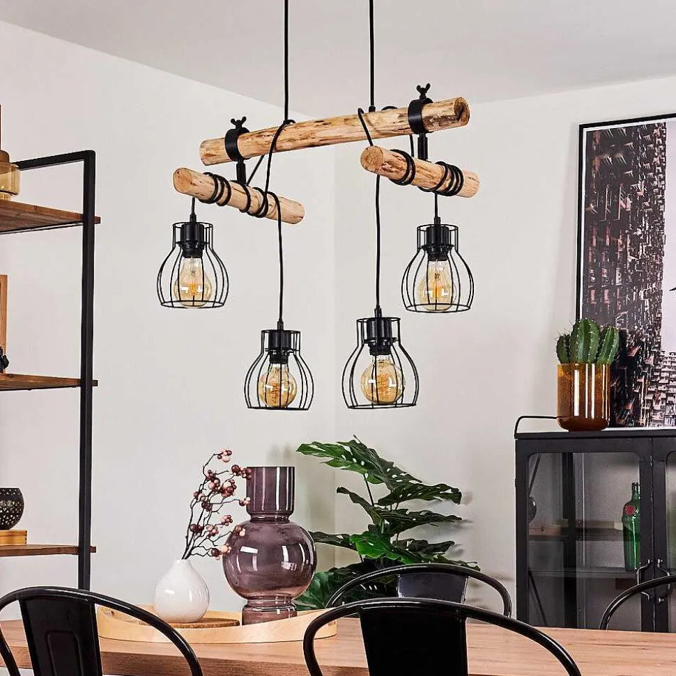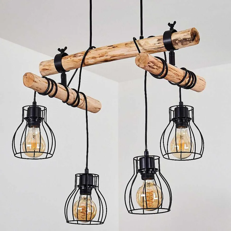 Plafonnier Salmi Led Brun, Couleur Bois, Noir, 1 Lumiere, Telecommandes