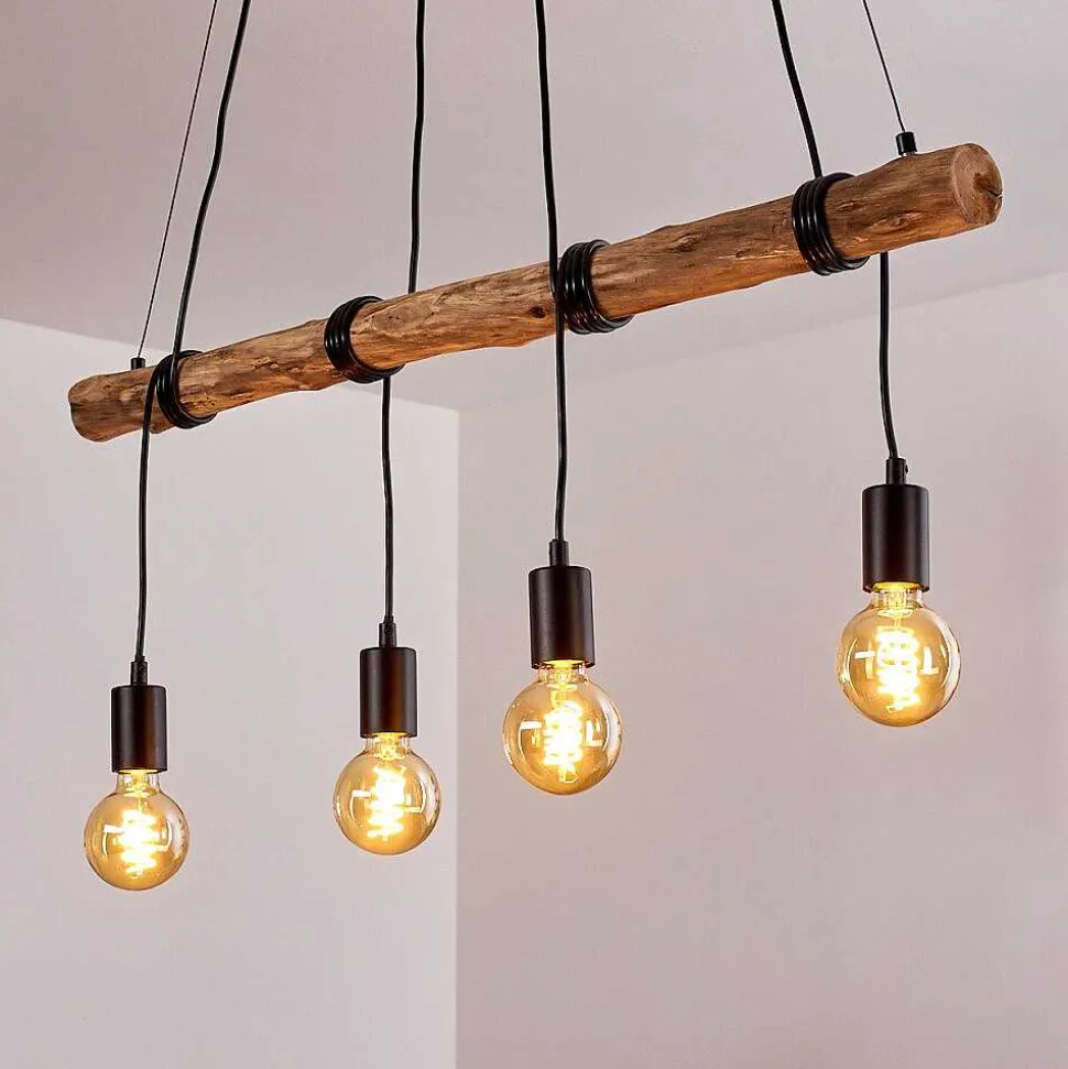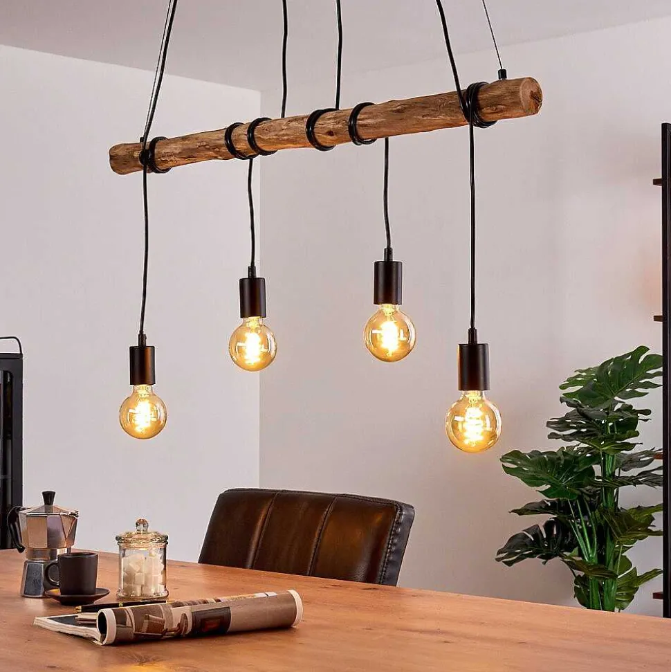 Suspension Tirana Brun, Noir, 4 Lumieres
