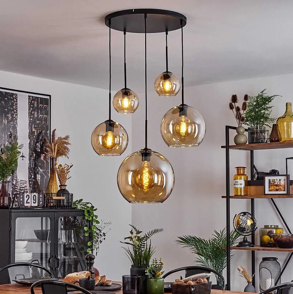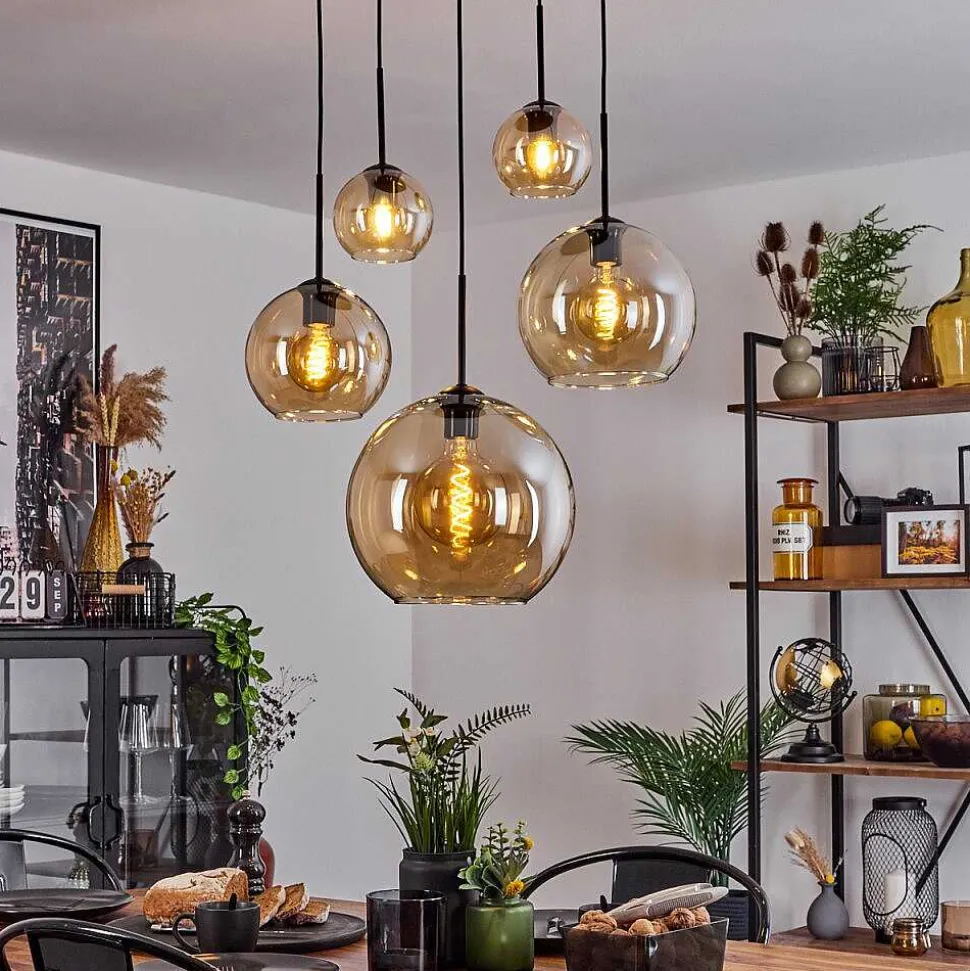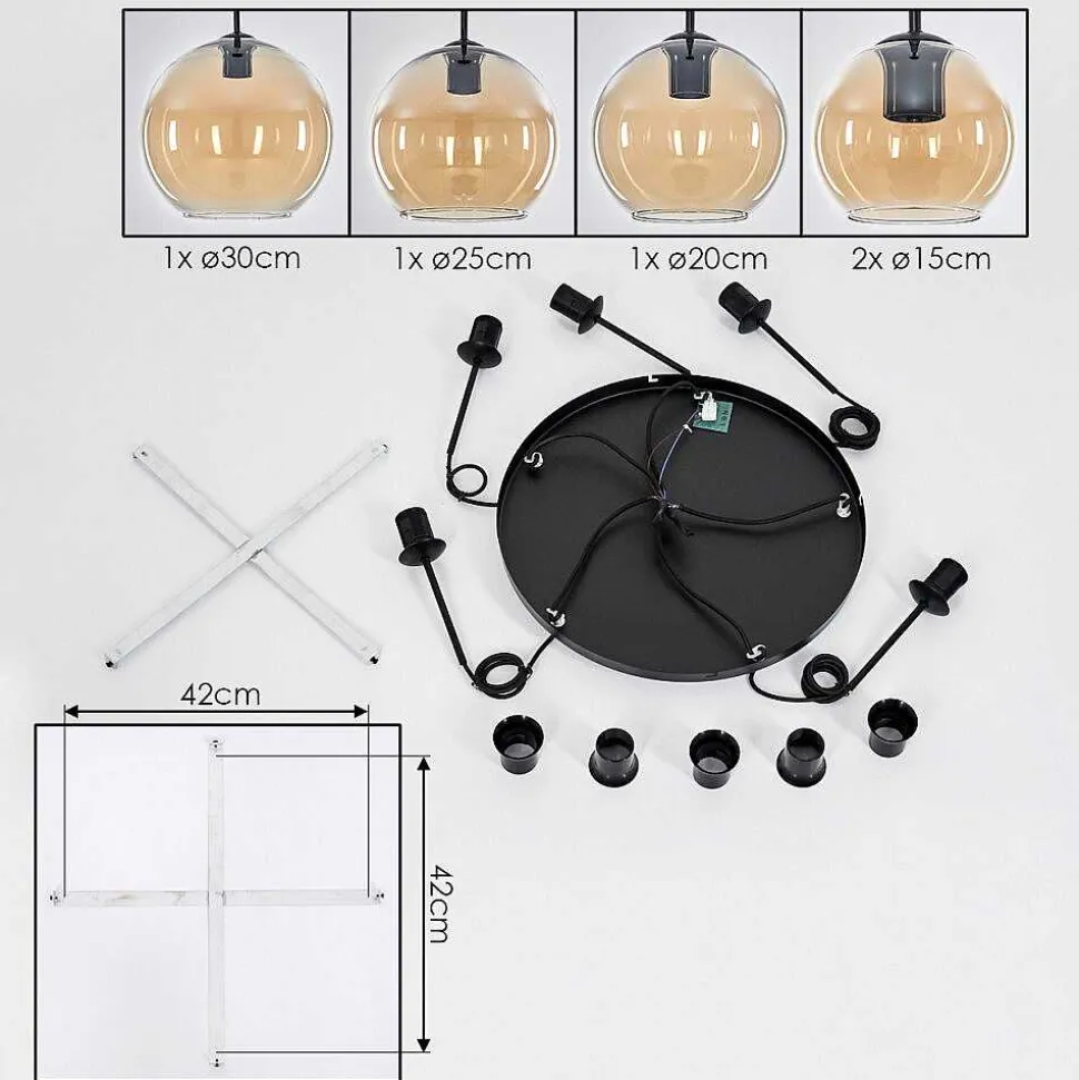 Plafonnier – Verre 15 Cm Gastor Ambre, Clair, Fume, 5 Lumieres