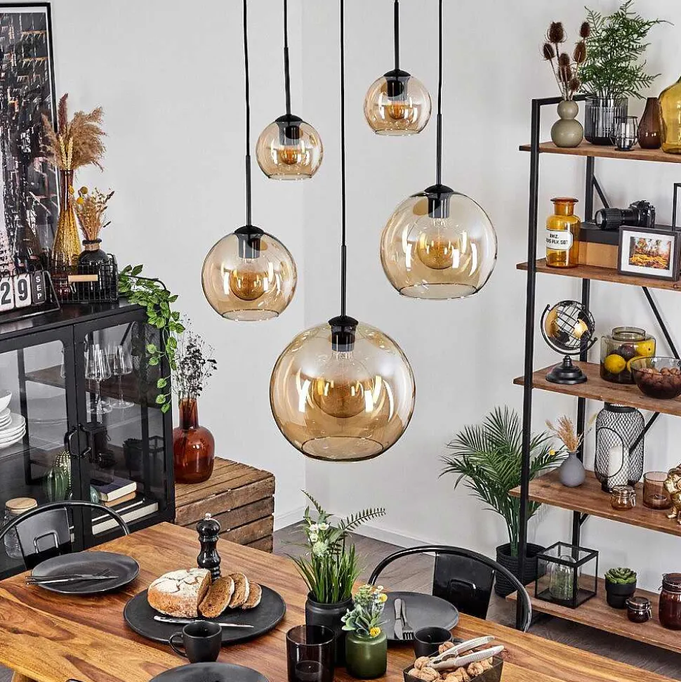 Suspension Verre 15 Cm, 20 Cm, 25 Cm, 30Cm Koyoto Ambre, 5 Lumieres