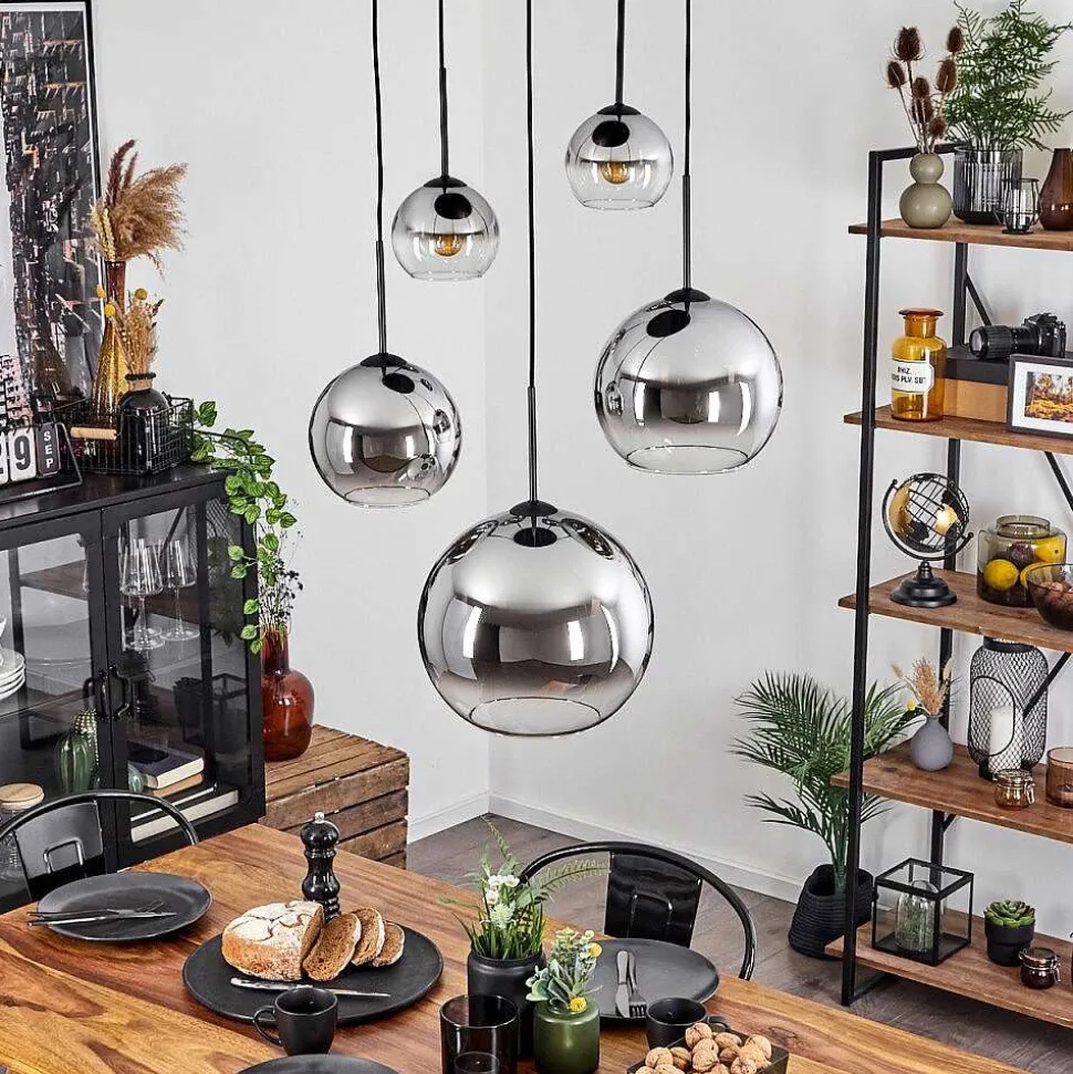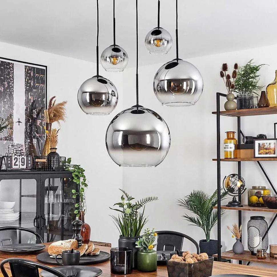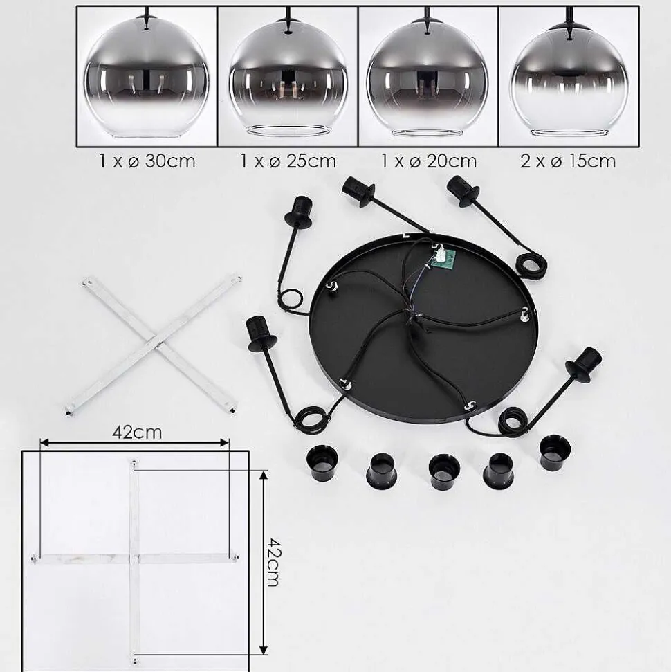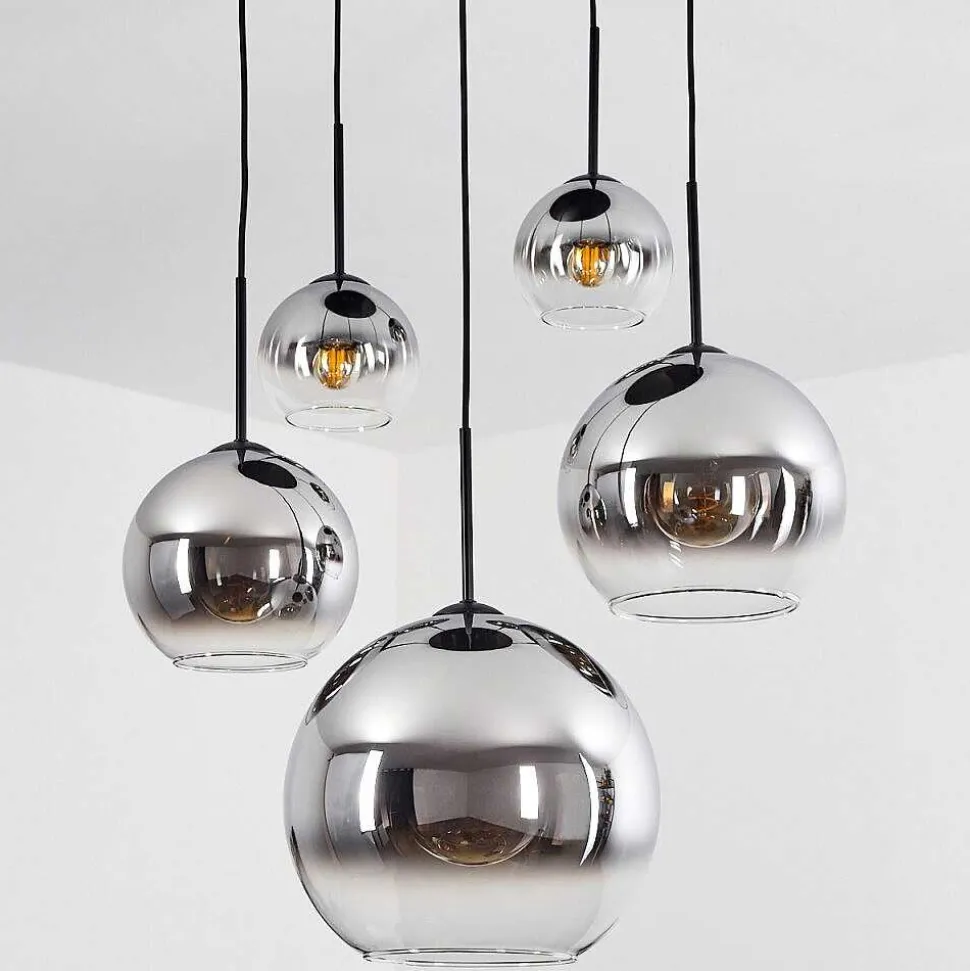 Suspension Verre 15 Cm, 20 Cm, 25 Cm, 30Cm Koyoto Chrome, Clair, Fume, 5 Lumieres