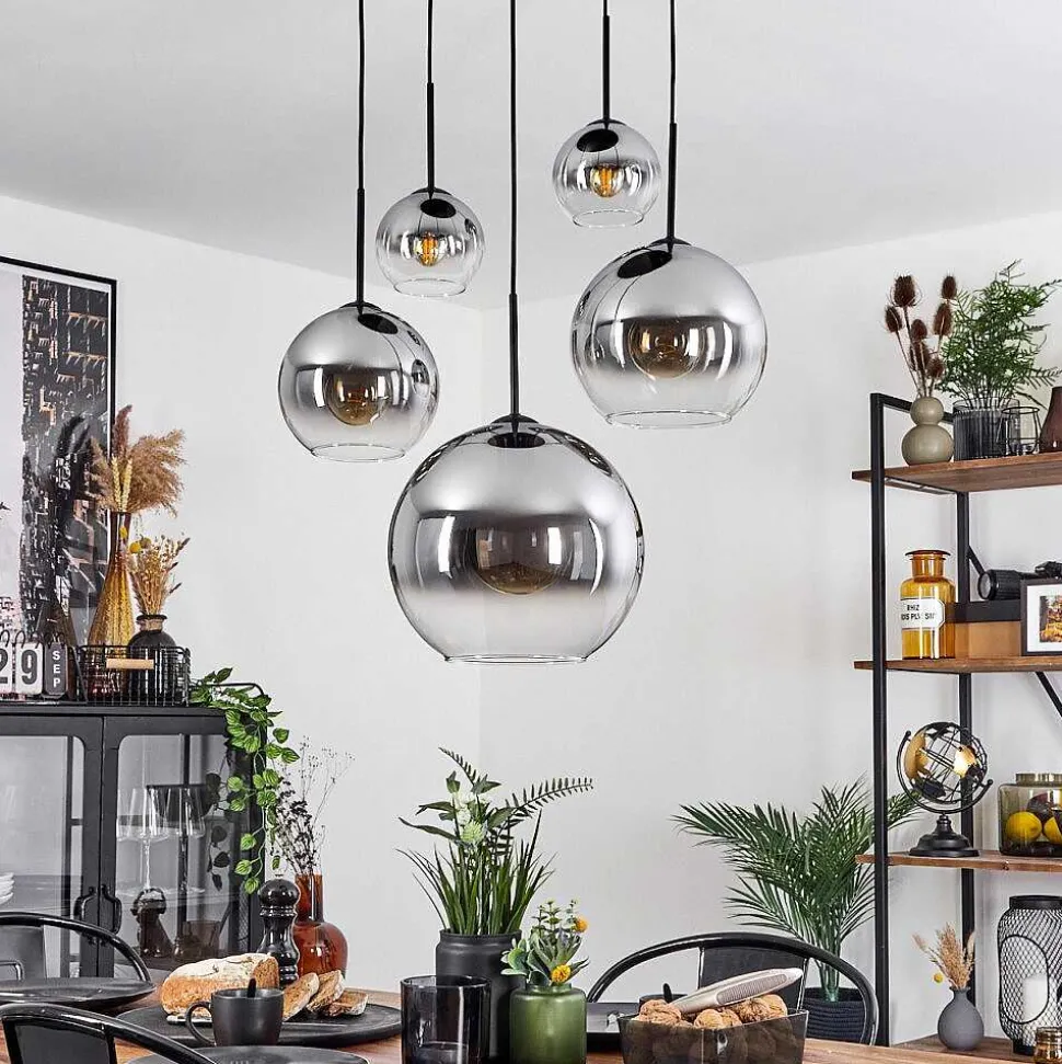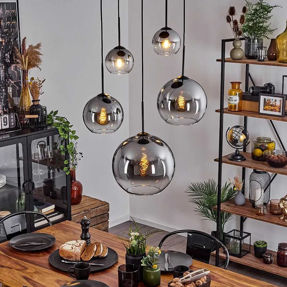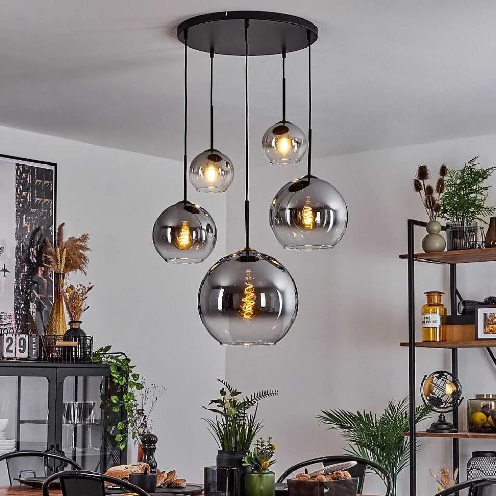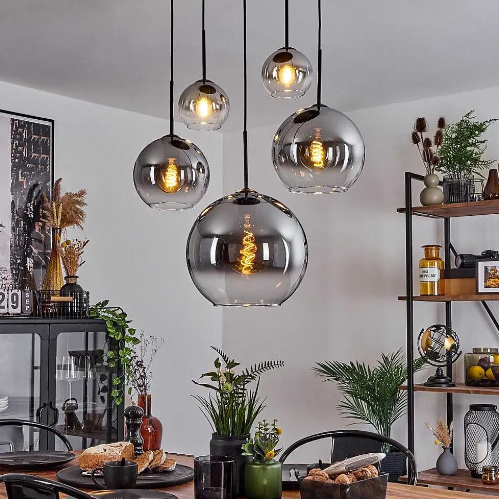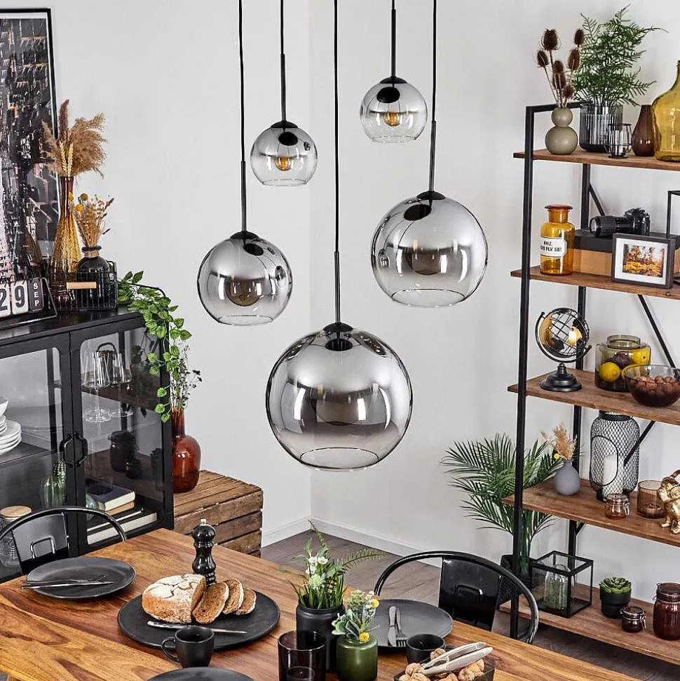 Suspension Verre 15 Cm, 20 Cm, 25 Cm, 30Cm Koyoto Clair, Fume, 5 Lumieres