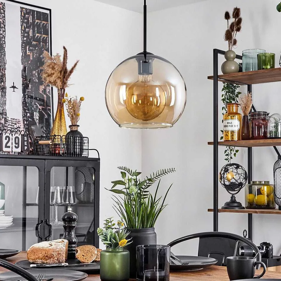 Suspension Verre 25 Cm Koyoto Ambre, 1 Lumiere
