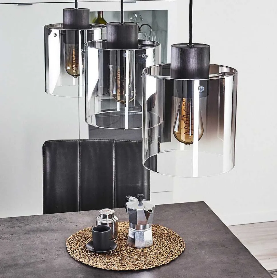 Plafonnier Salmi Led Brun, Couleur Bois, Noir, 1 Lumiere, Telecommandes