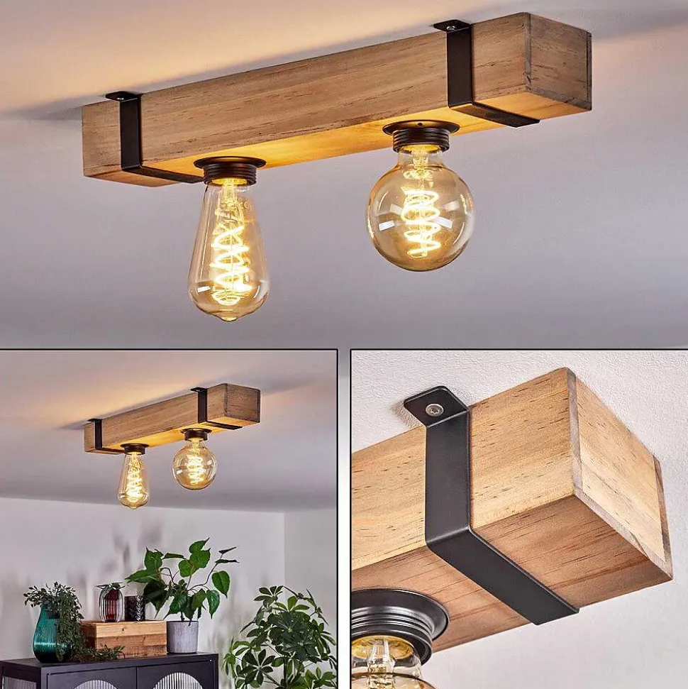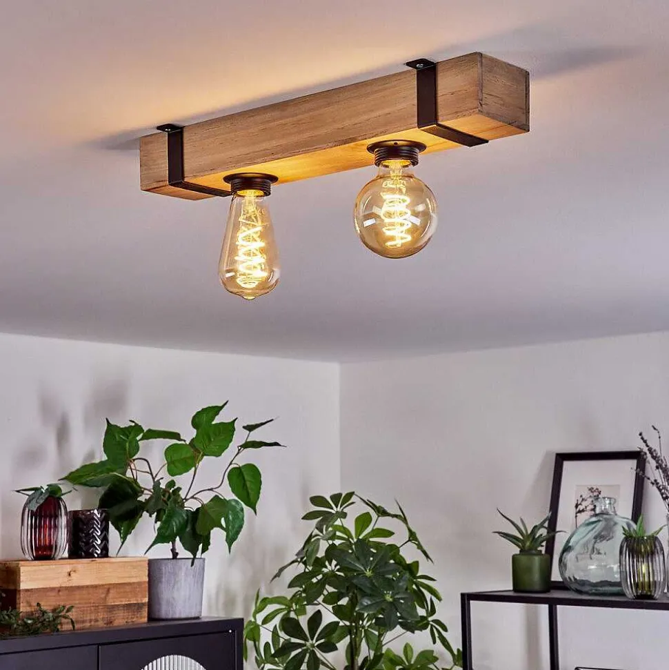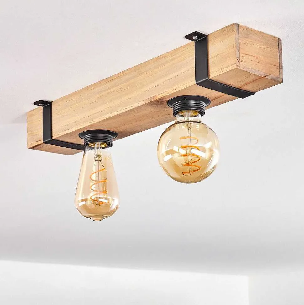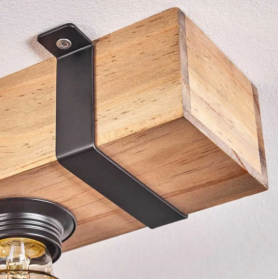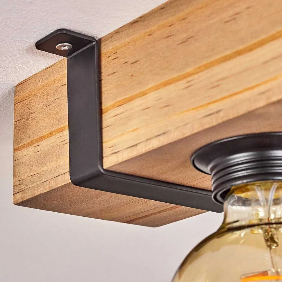 Plafonnier Salmi Led Brun, Couleur Bois, Noir, 1 Lumiere, Telecommandes