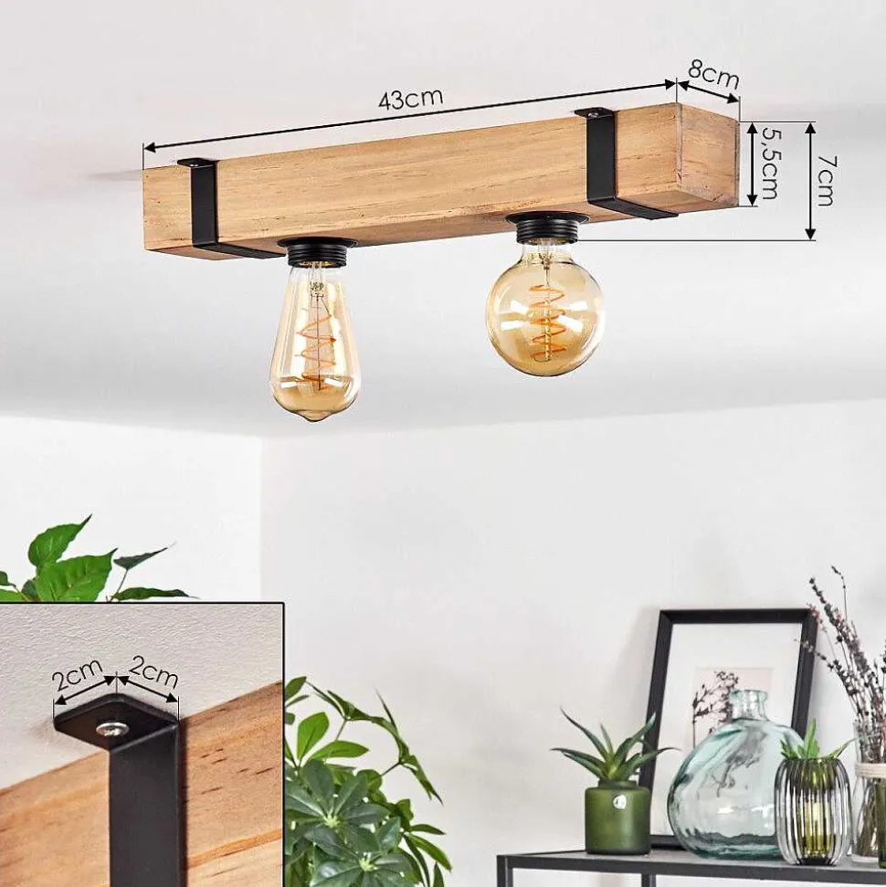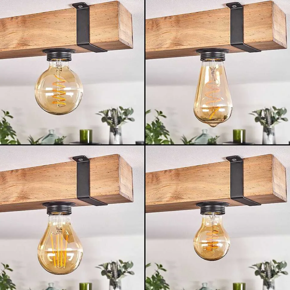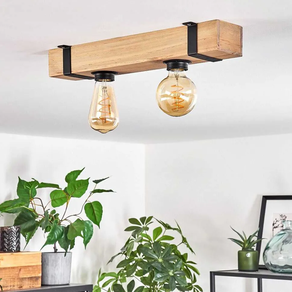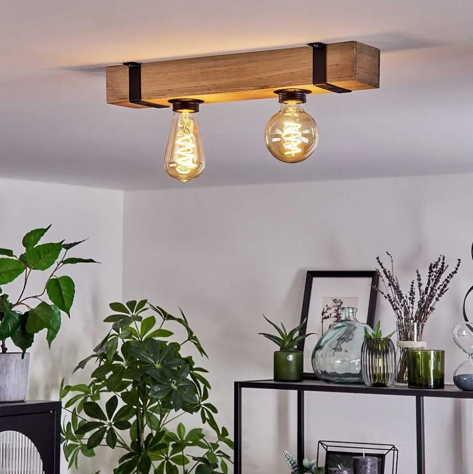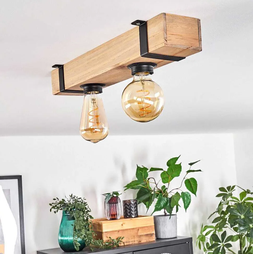 Plafonnier Salmi Led Brun, Couleur Bois, Noir, 1 Lumiere, Telecommandes