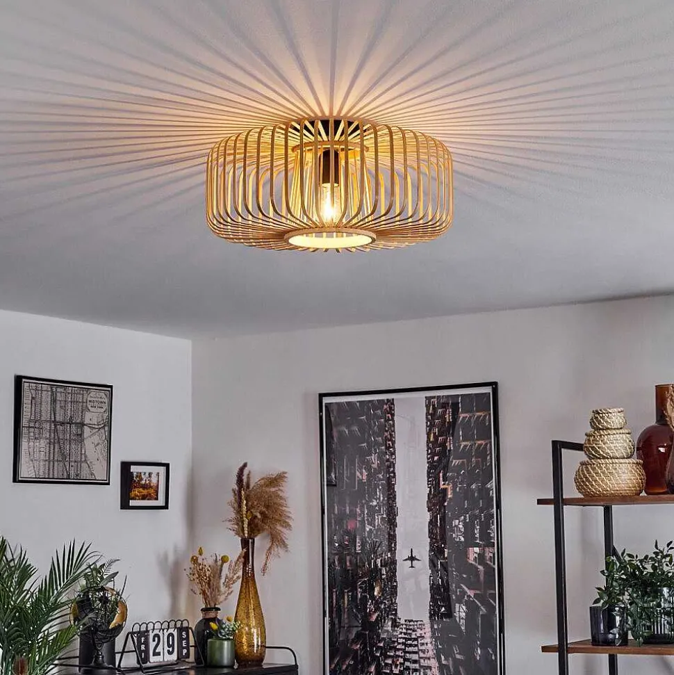 Plafonnier Salmi Led Brun, Couleur Bois, Noir, 1 Lumiere, Telecommandes