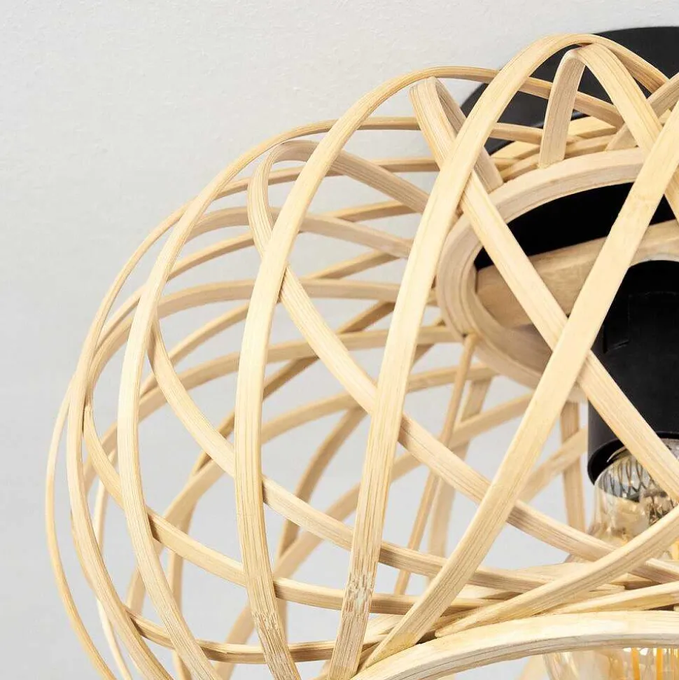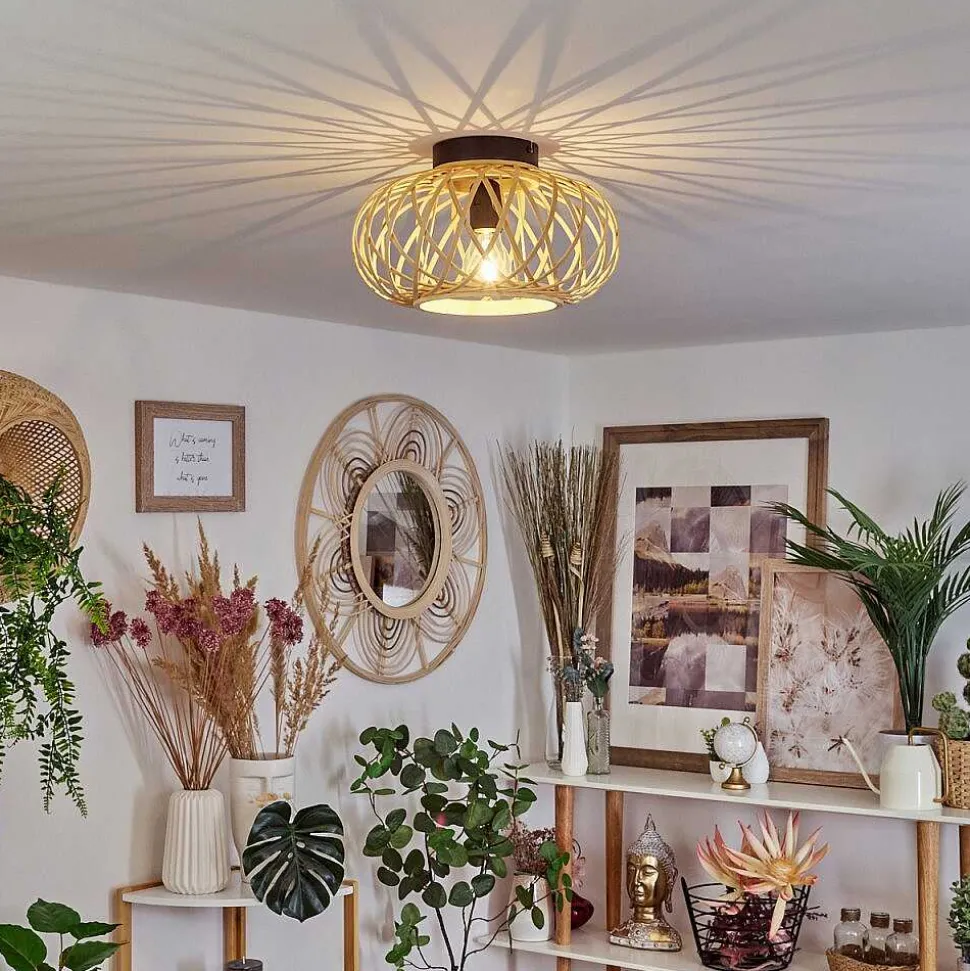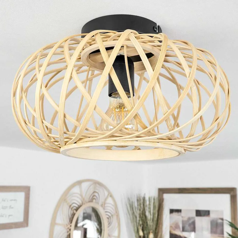 Plafonnier Salmi Led Brun, Couleur Bois, Noir, 1 Lumiere, Telecommandes