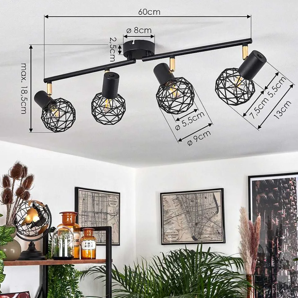 Plafonnier Palmira Or, Noir, 4 Lumieres