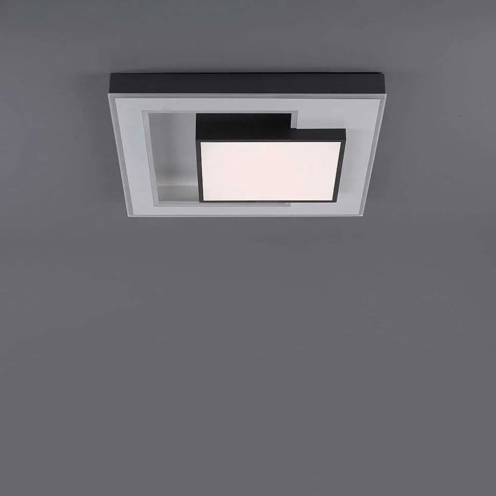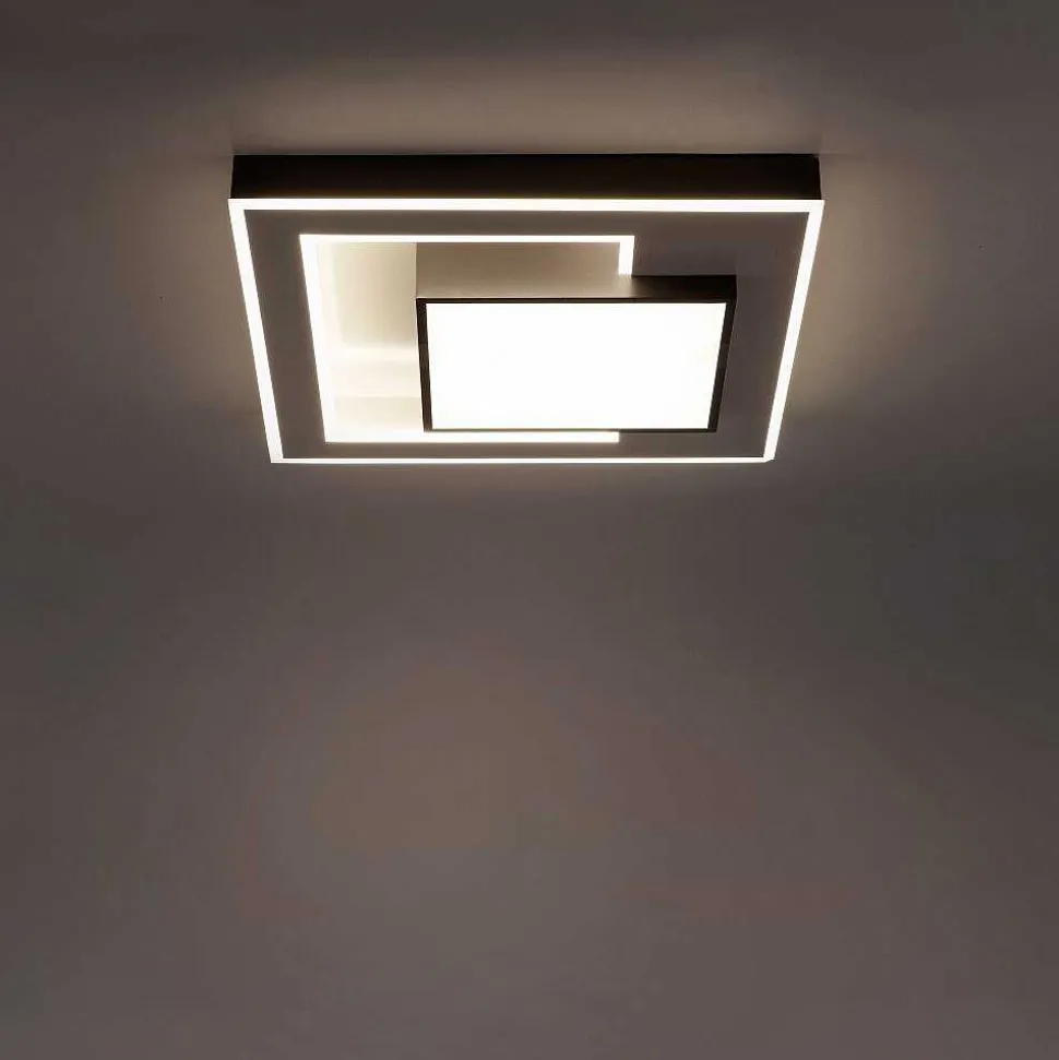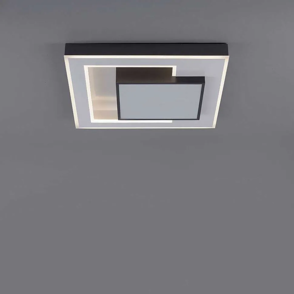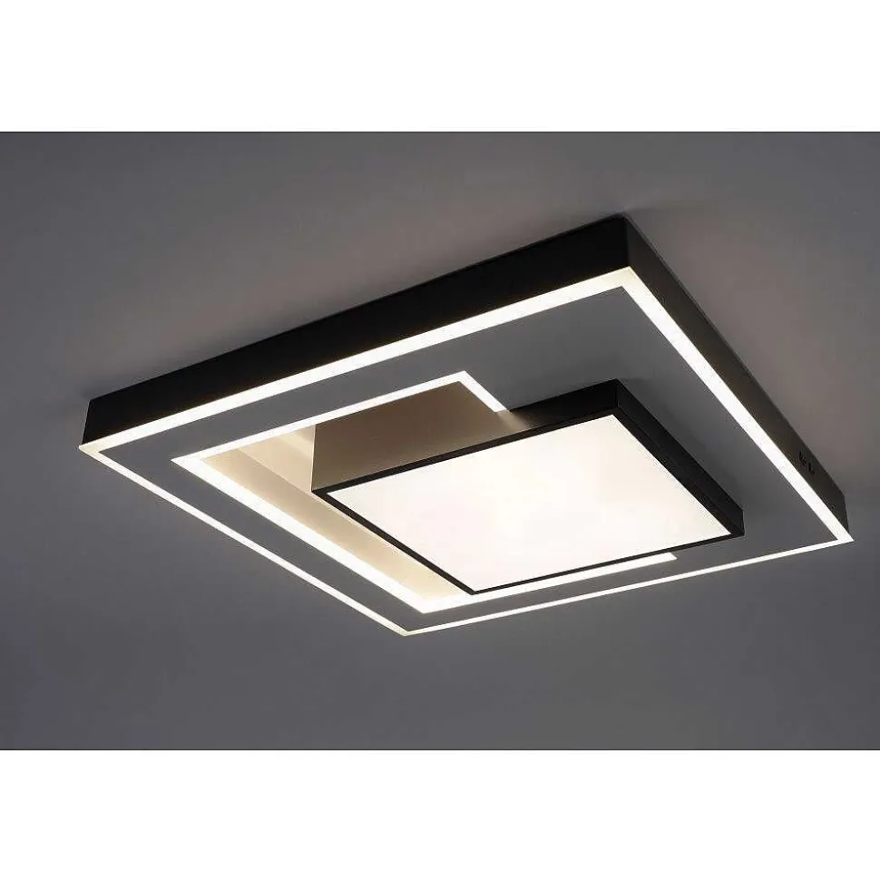 Plafonnier Paul Neuhaus Q-Marko Led Noir, 1 Lumiere, Telecommandes, Changeur De Couleurs