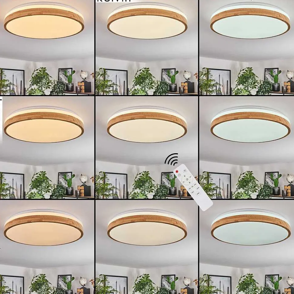 Plafonnier Salmi Led Brun, Couleur Bois, Noir, 1 Lumiere, Telecommandes