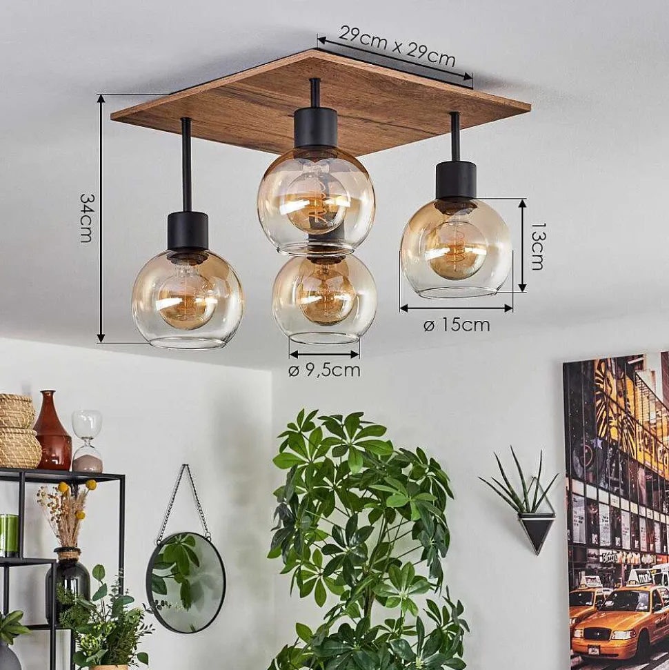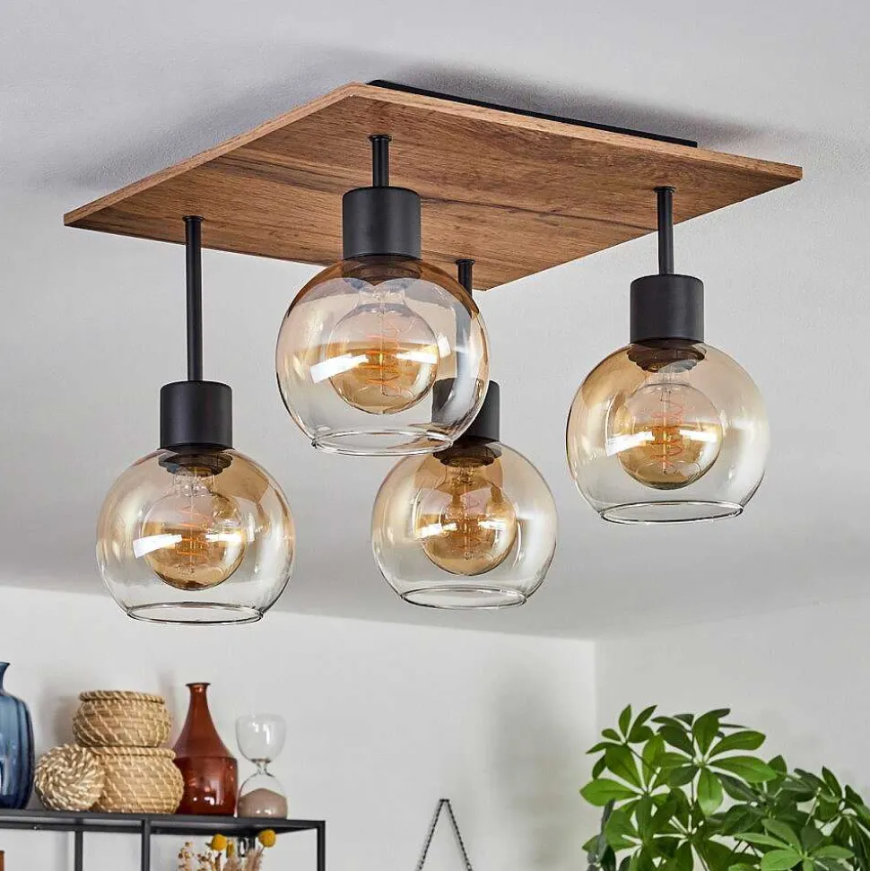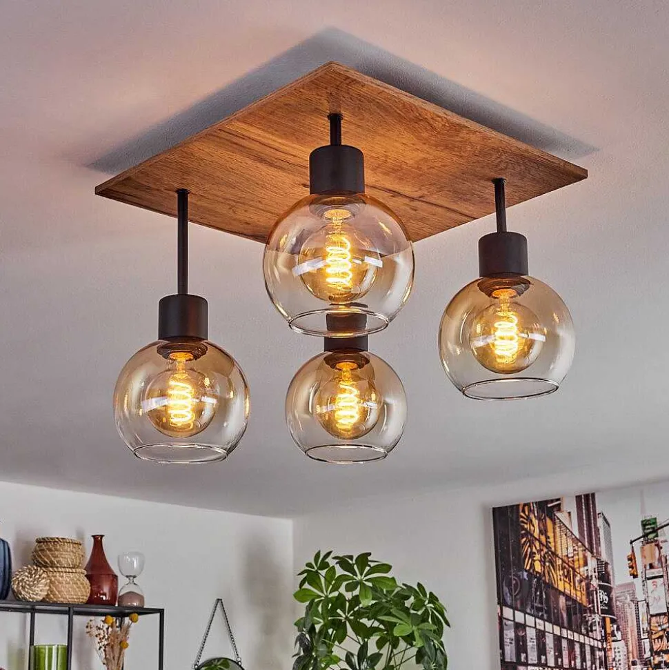 Plafonnier Salmi Led Brun, Couleur Bois, Noir, 1 Lumiere, Telecommandes
