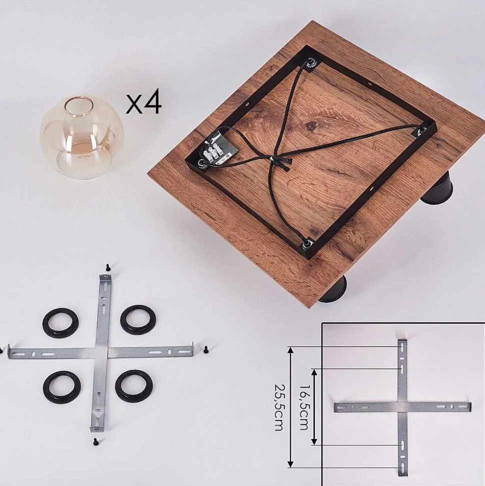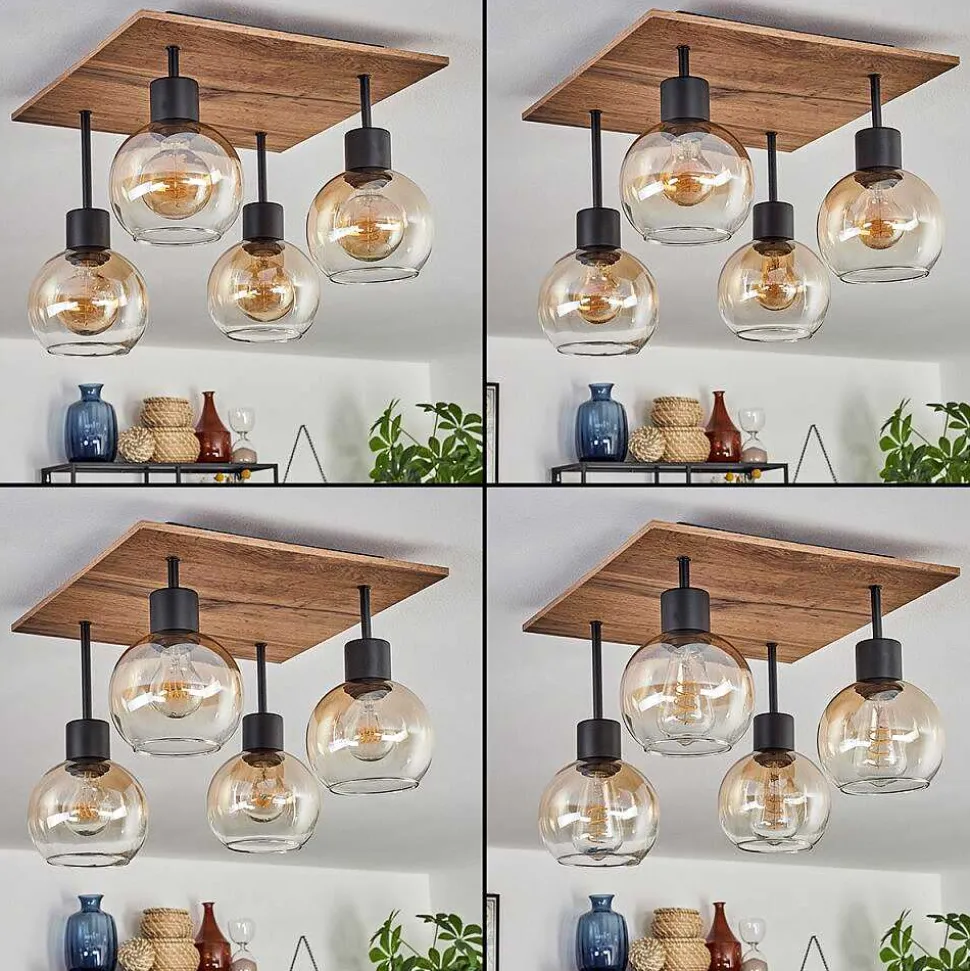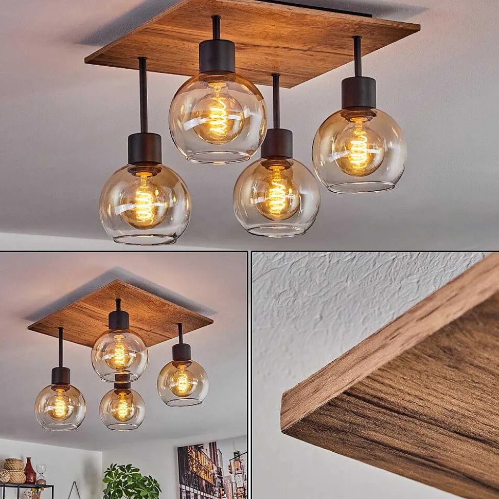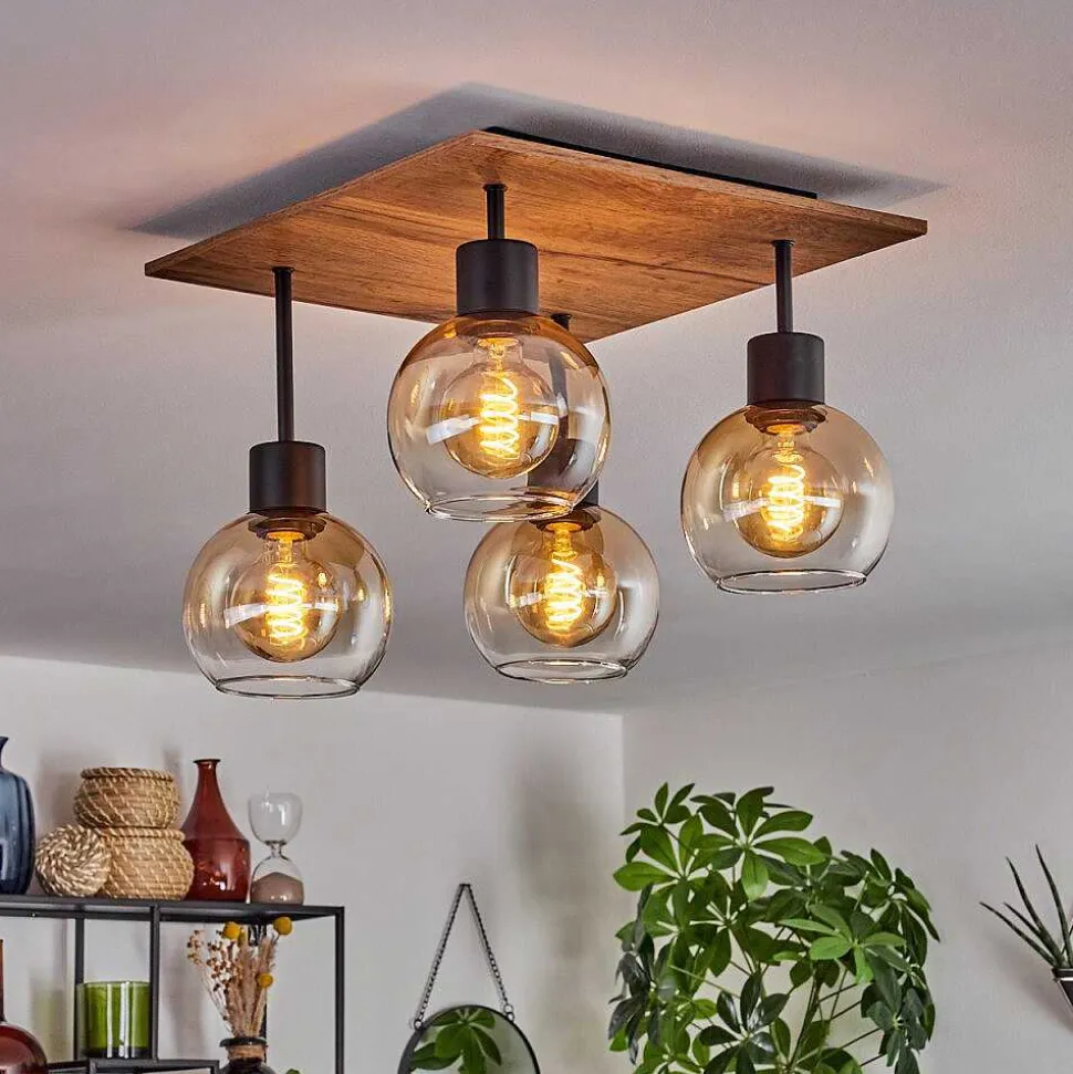 Plafonnier Salmi Led Brun, Couleur Bois, Noir, 1 Lumiere, Telecommandes